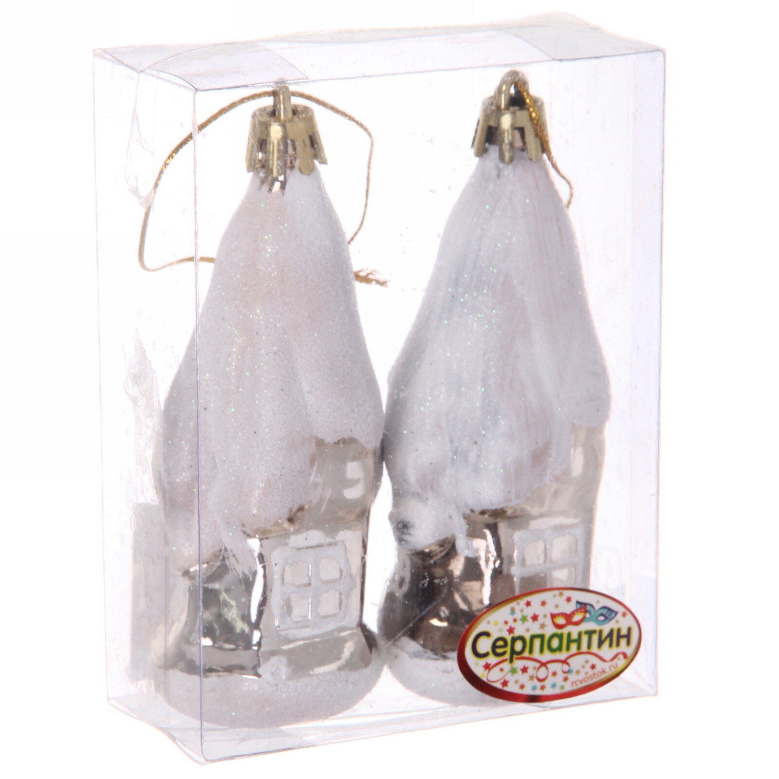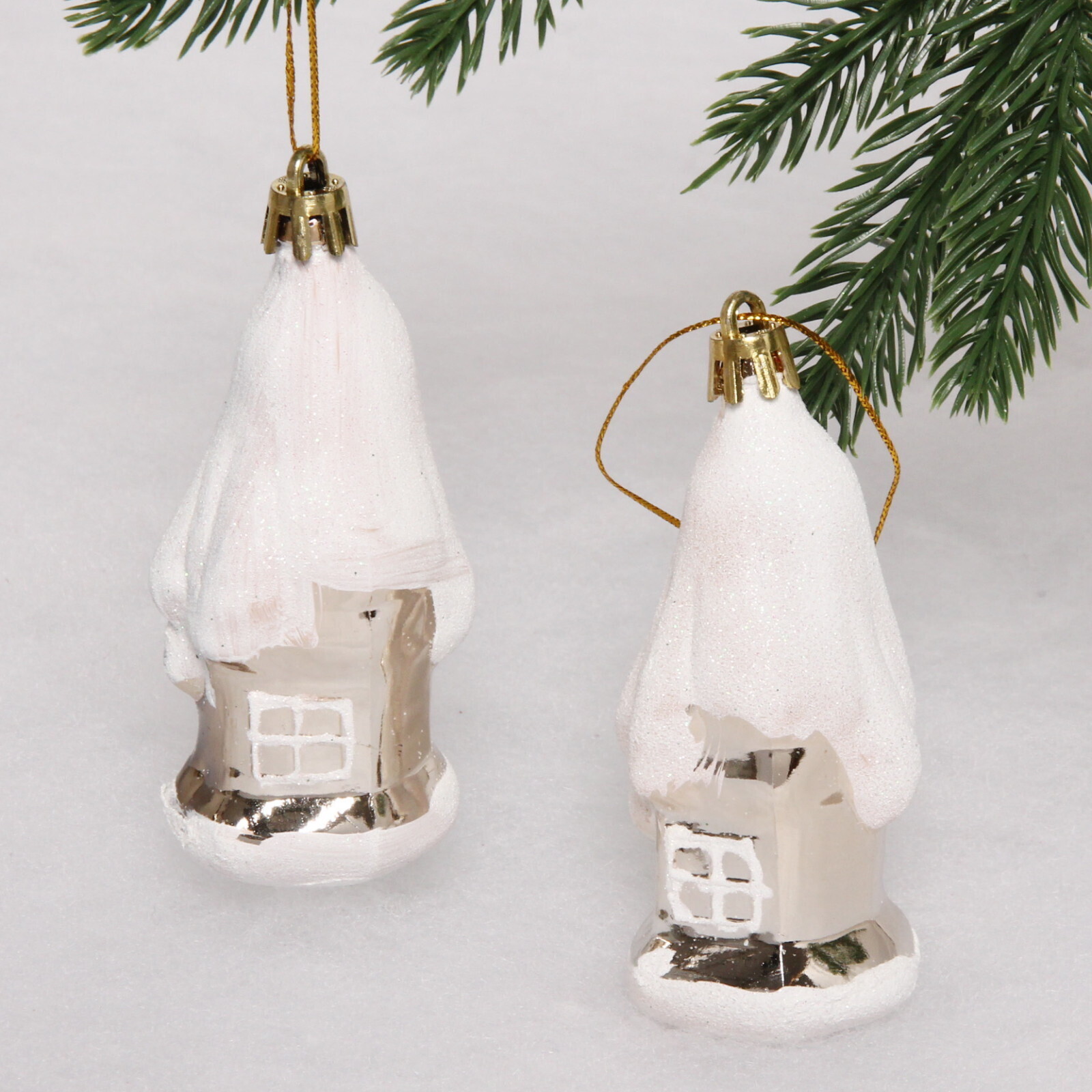 Елочные игрушки «Загадочный домик» 9 см (набор 2 шт), Шампань, пластик, для елки и декорирования