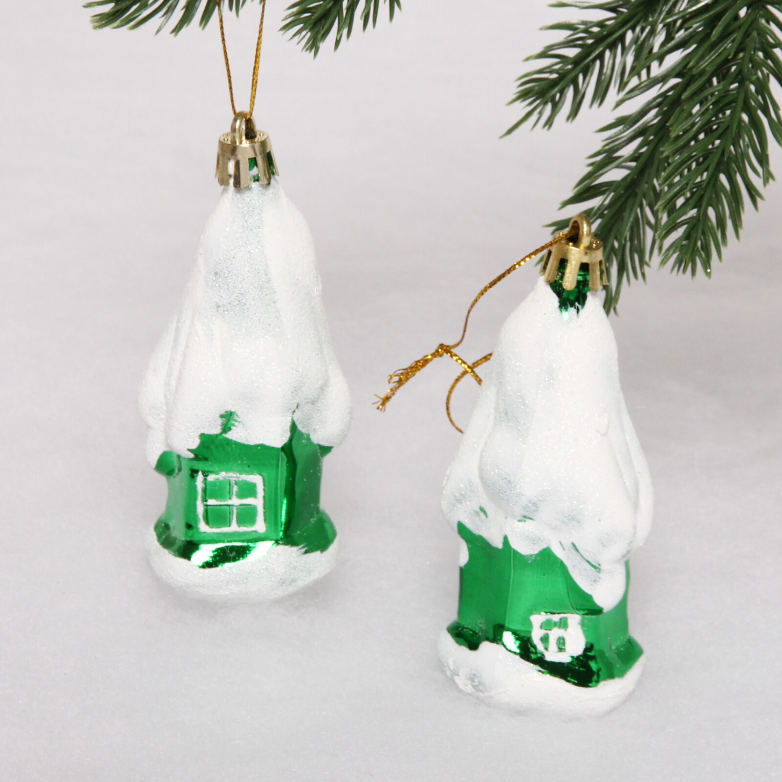 Эти уникальные елочные игрушки в форме домиков добавят уют и атмосферу праздника в ваш дом. Их зеленый цвет и белая снежная крыша с блестками создают ощущение зимней сказки, а стильный дизайн привлекает внимание и радует глаз. Подарите себе и своим близким незабываемые моменты, украсив елку этими замечательными игрушками.