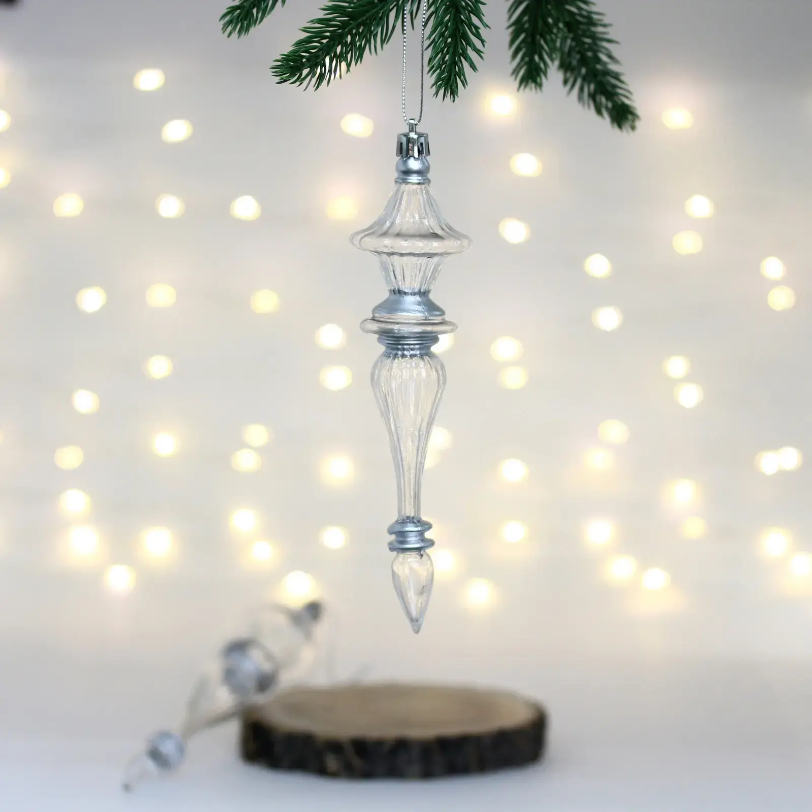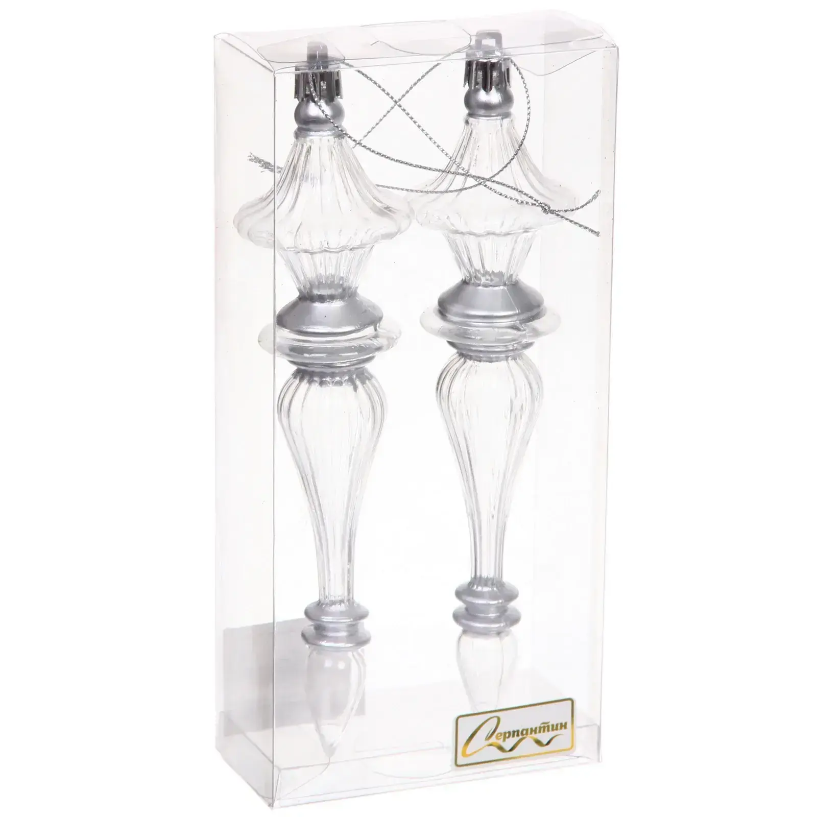 Елочные украшения «Изящные переливы» 4.5*4.5*19 см (набор 2 шт), Белый, пластик, для елки и декорирования