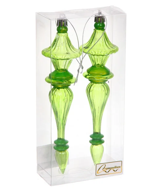 Длина каждой подвески составляет 19 см, диаметр около 4,5 см. Изготовлены из прочного стекла, устойчивого к потере блеска при правильном хранении. Поставляются в прозрачной коробке, что удобно для аккуратного хранения между сезонами.