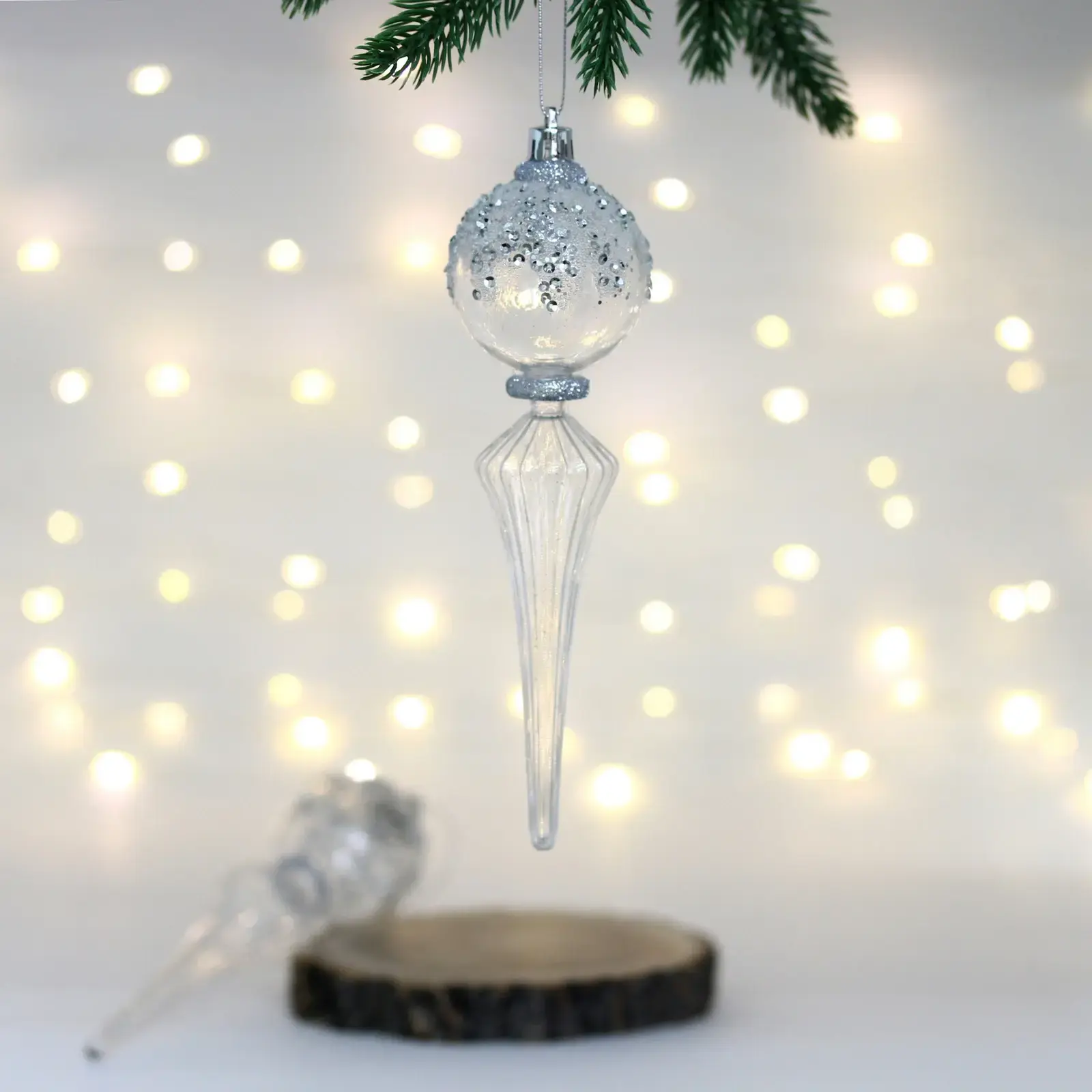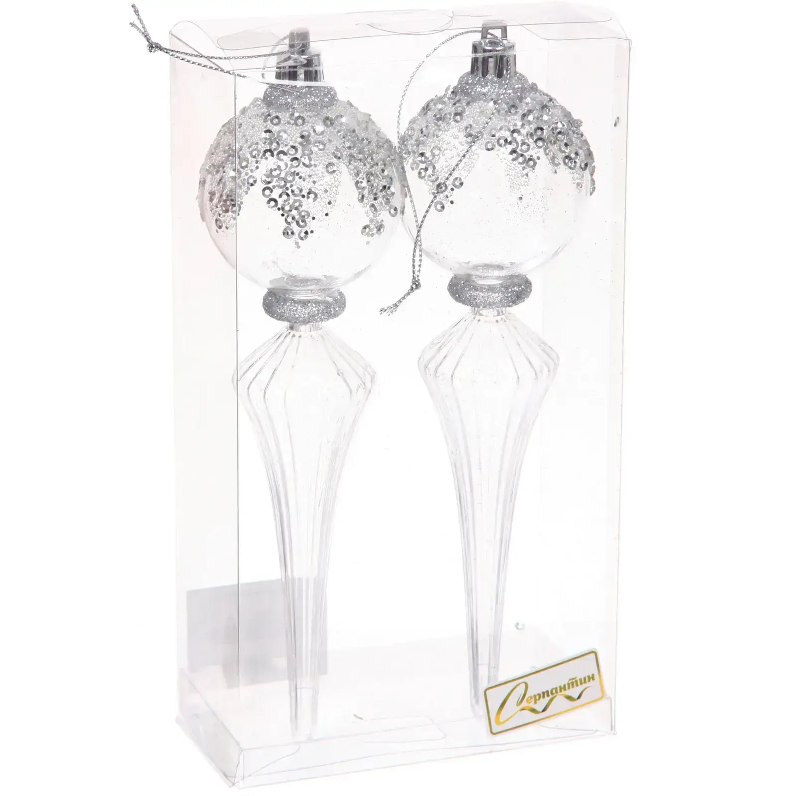 Элегантные елочные украшения 'Изящный блеск' станут идеальным дополнением вашего праздничного декора. Благодаря изысканному сочетанию прозрачного пластика и серебристых блесток, они создают неповторимую игру света.