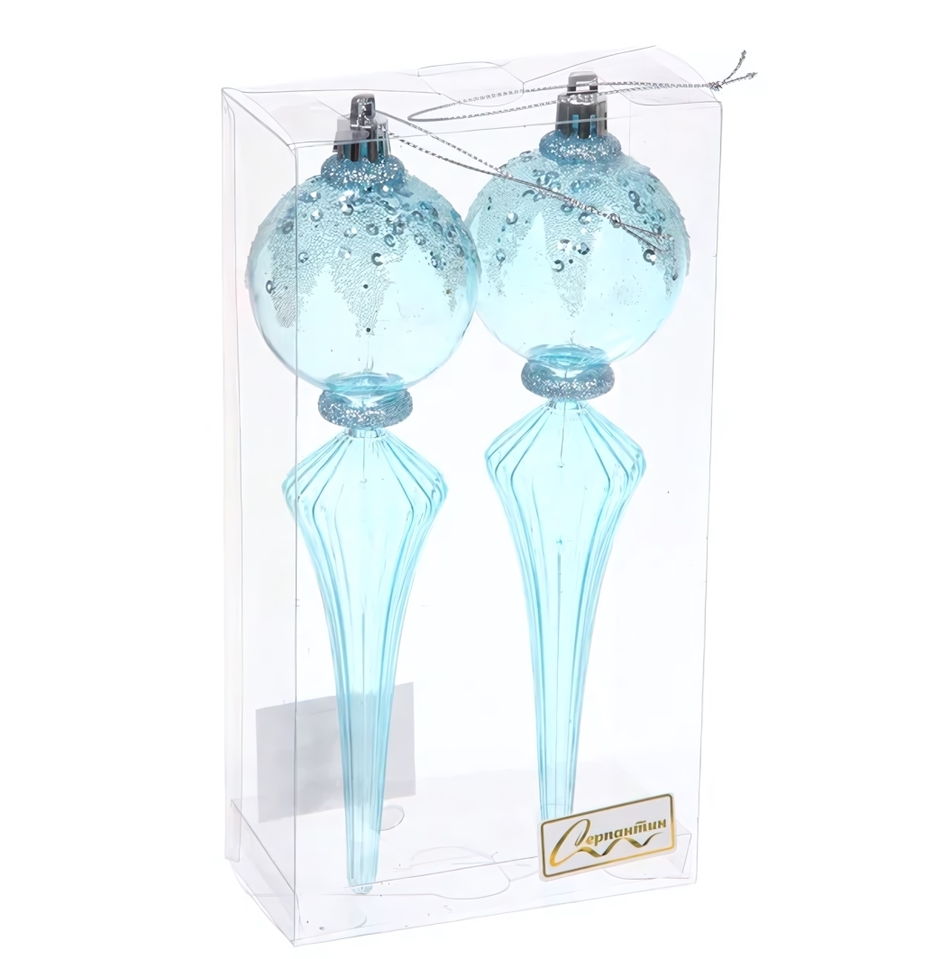 Высота каждого украшения — около 19 см, диаметр в верхней части — 5,3 см. Лёгкие по весу, их удобно размещать даже на тонких ветках. Отгружается набор из двух штук в аккуратной прозрачной упаковке, что делает их подходящим вариантом и для подарка.