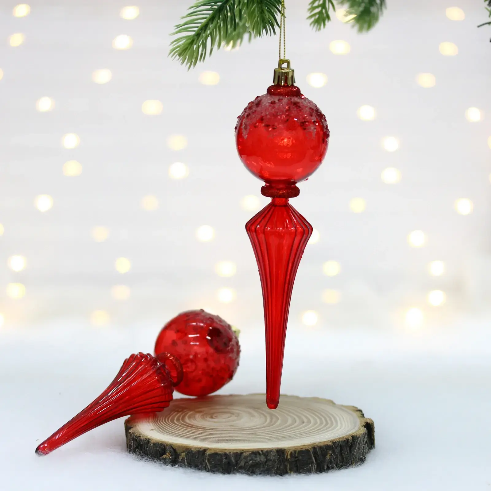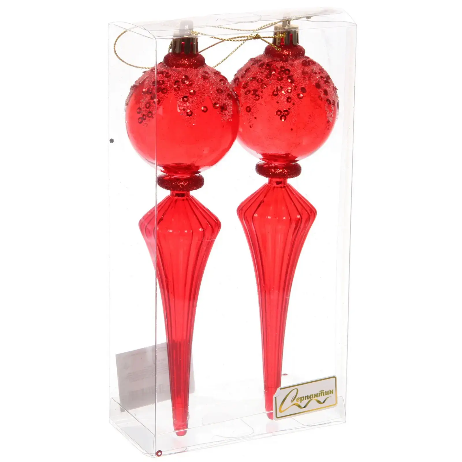 Елочные украшения «Изящный блеск» 5.3*5.3*19 см (набор 2 шт), Красный, пластик, для елки и декорирования