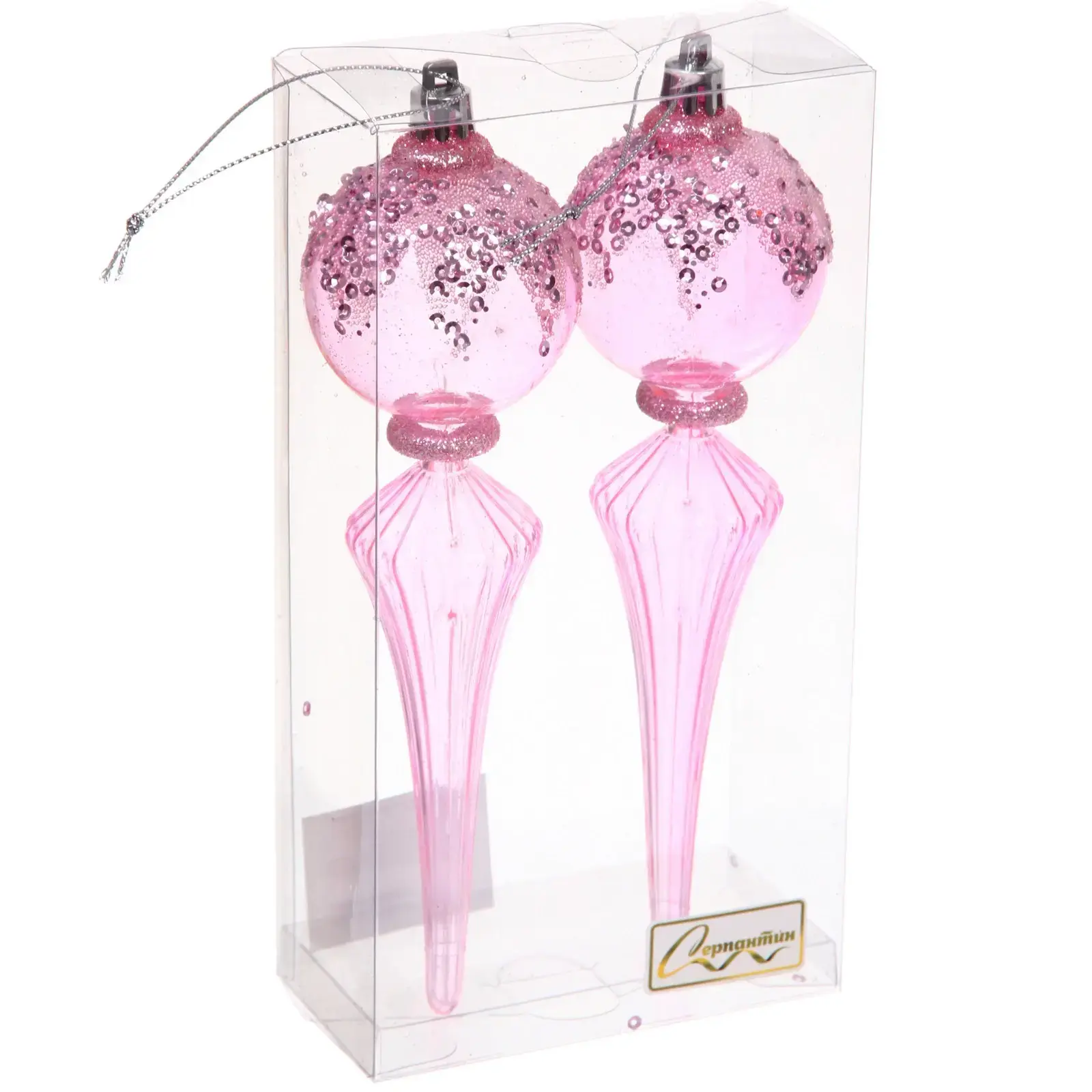 Размер каждого украшения составляет 5.3*5.3*19 см, что делает их заметными, но не слишком громоздкими. Розовый цвет с блестками добавляет изящности и элегантности, а прозрачная упаковка позволяет увидеть содержимое и оценить красоту украшений еще до покупки.