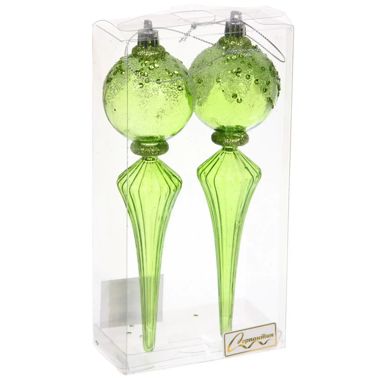 Набор из двух каплевидных игрушек с мерцающими блёстками и воздушными пузырьками станет изюминкой новогоднего декора. Идеальный выбор для тех, кто ценит гармонию стиля и практичности в праздничном оформлении.
