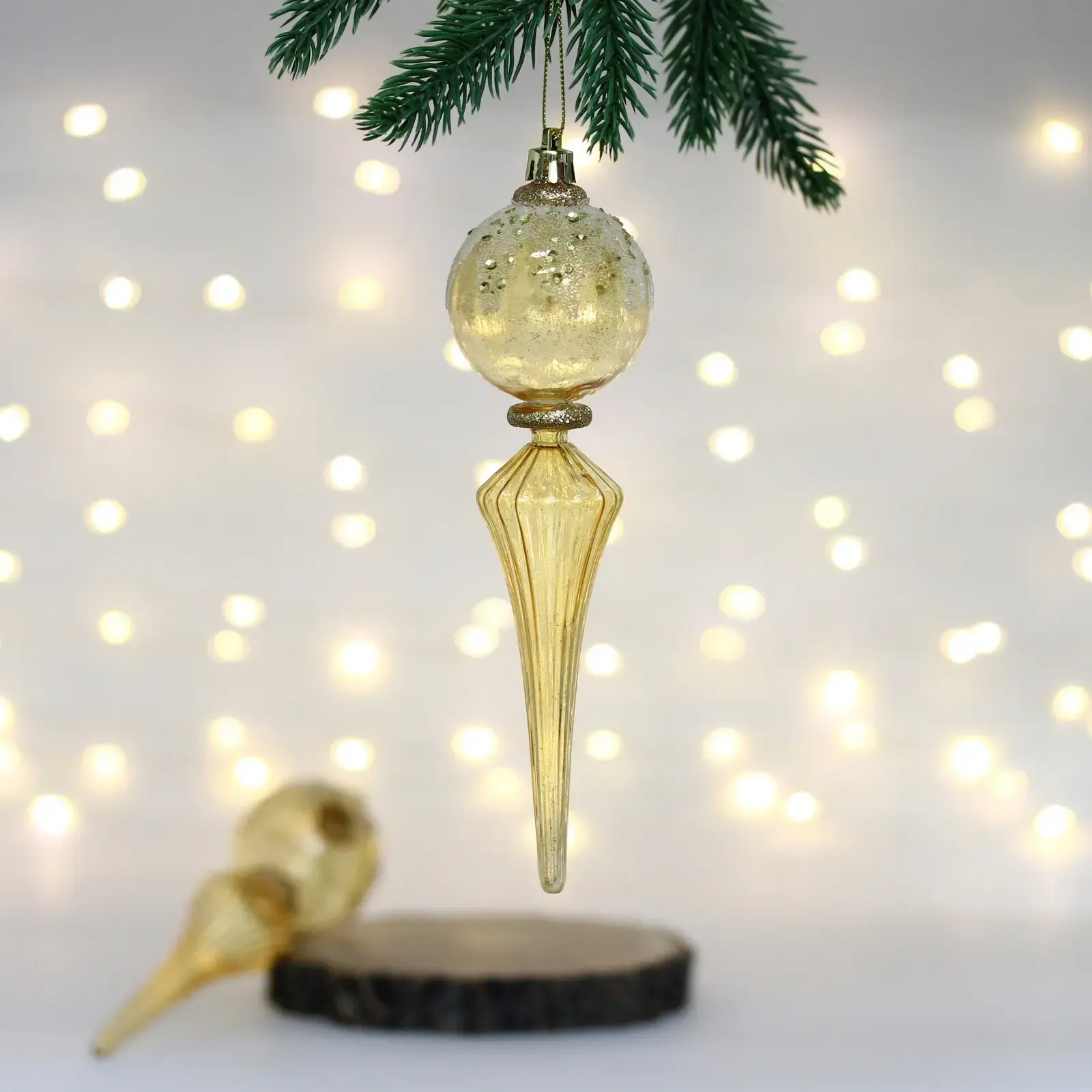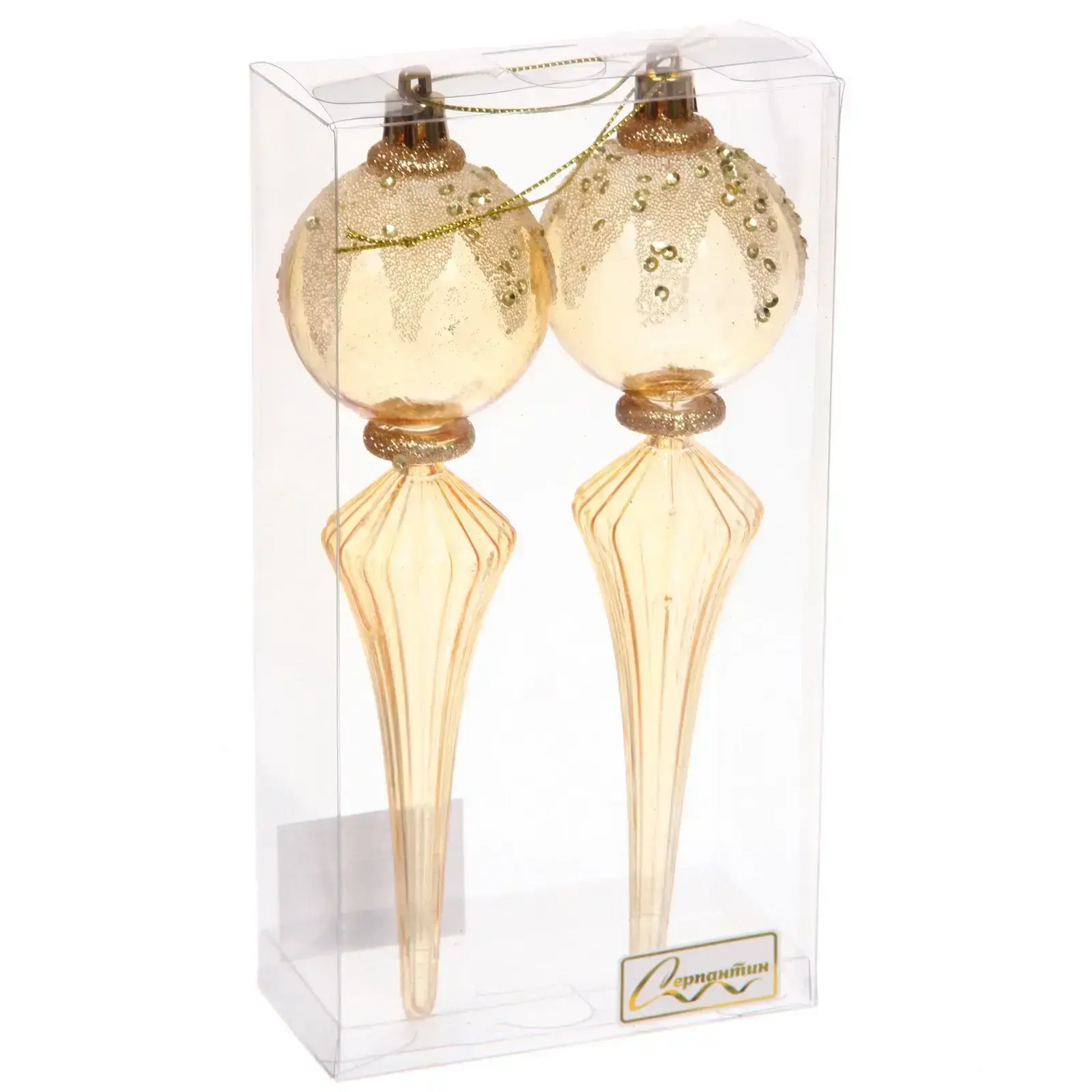 Размер каждого шара составляет 5.3 см в диаметре и 19 см в высоту, что делает их идеальными для любого размера елки. Золотой цвет и блестящие элементы придают им праздничный вид, а конусовидные основания обеспечивают надежное крепление. Упакованы в прозрачную коробку, что делает их отличным подарком для друзей и близких.