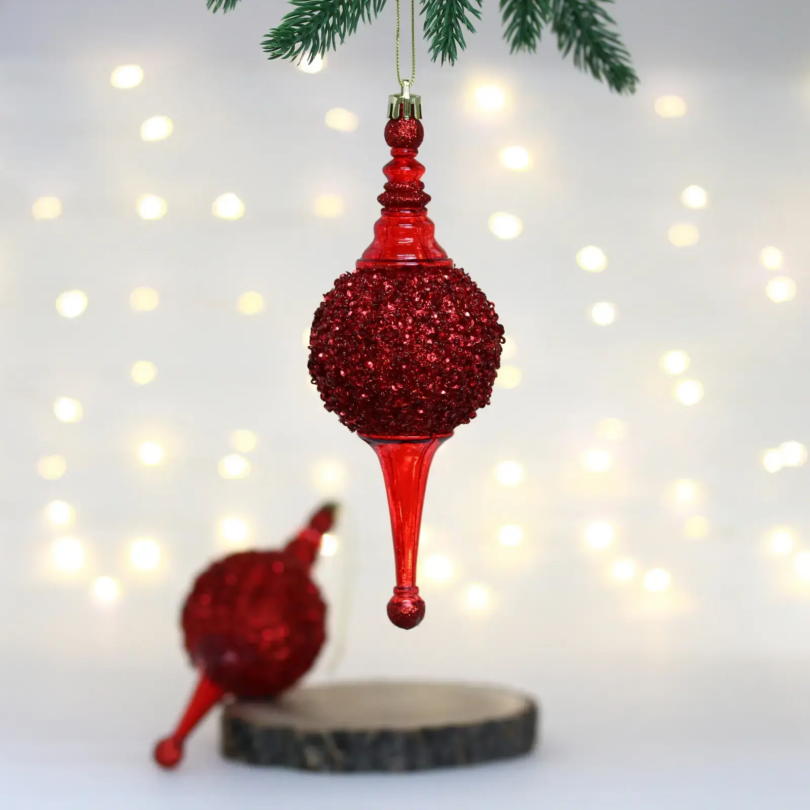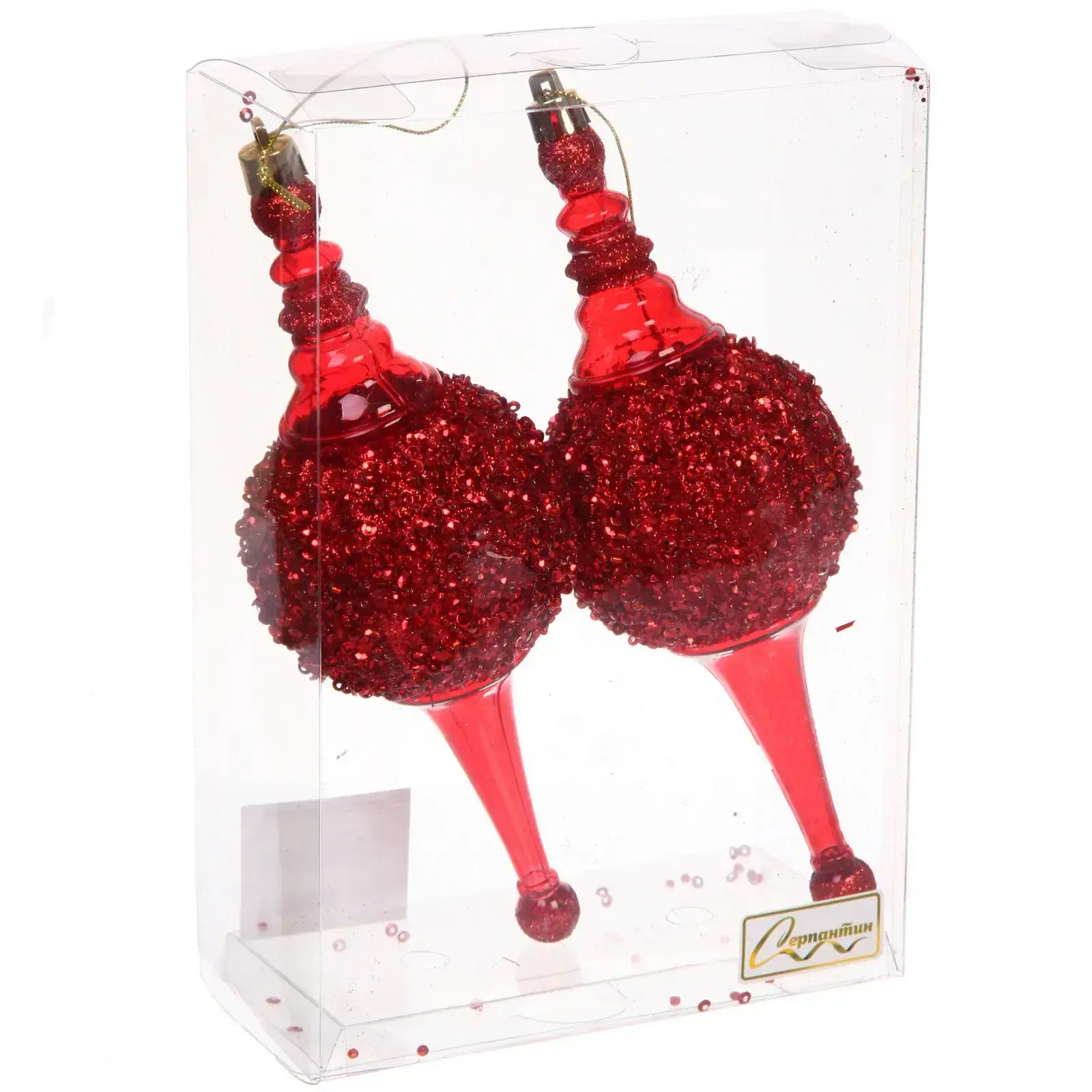 Елочные украшения «Мерцание ночи» 6.5*6.5*19.5 см (набор 2 шт), Красный, пластик, для елки и декорирования