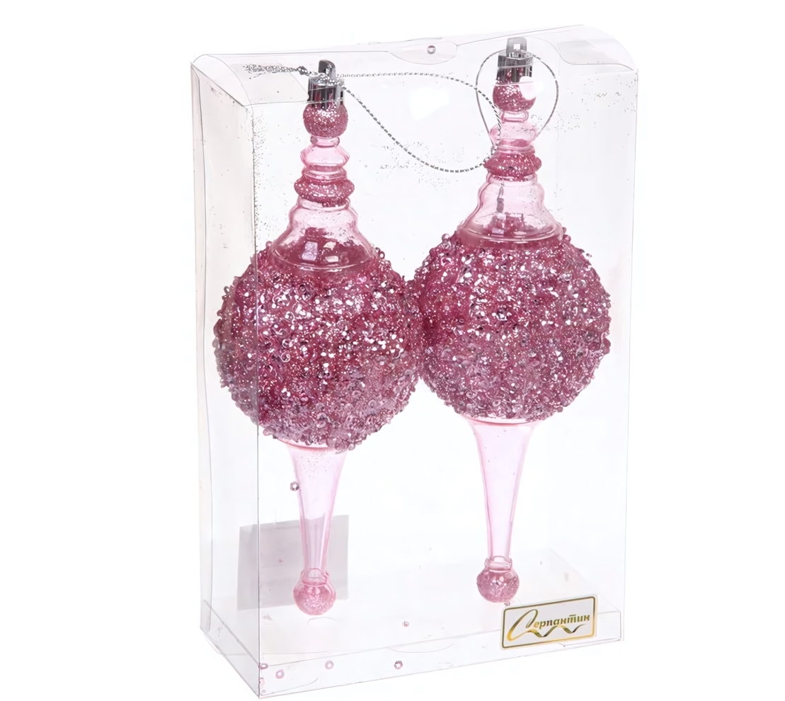 Елочные шары 'Мерцание ночи', розовые, набор 2 шт, 6.5*6.5*19.5 см, блестящая поверхность