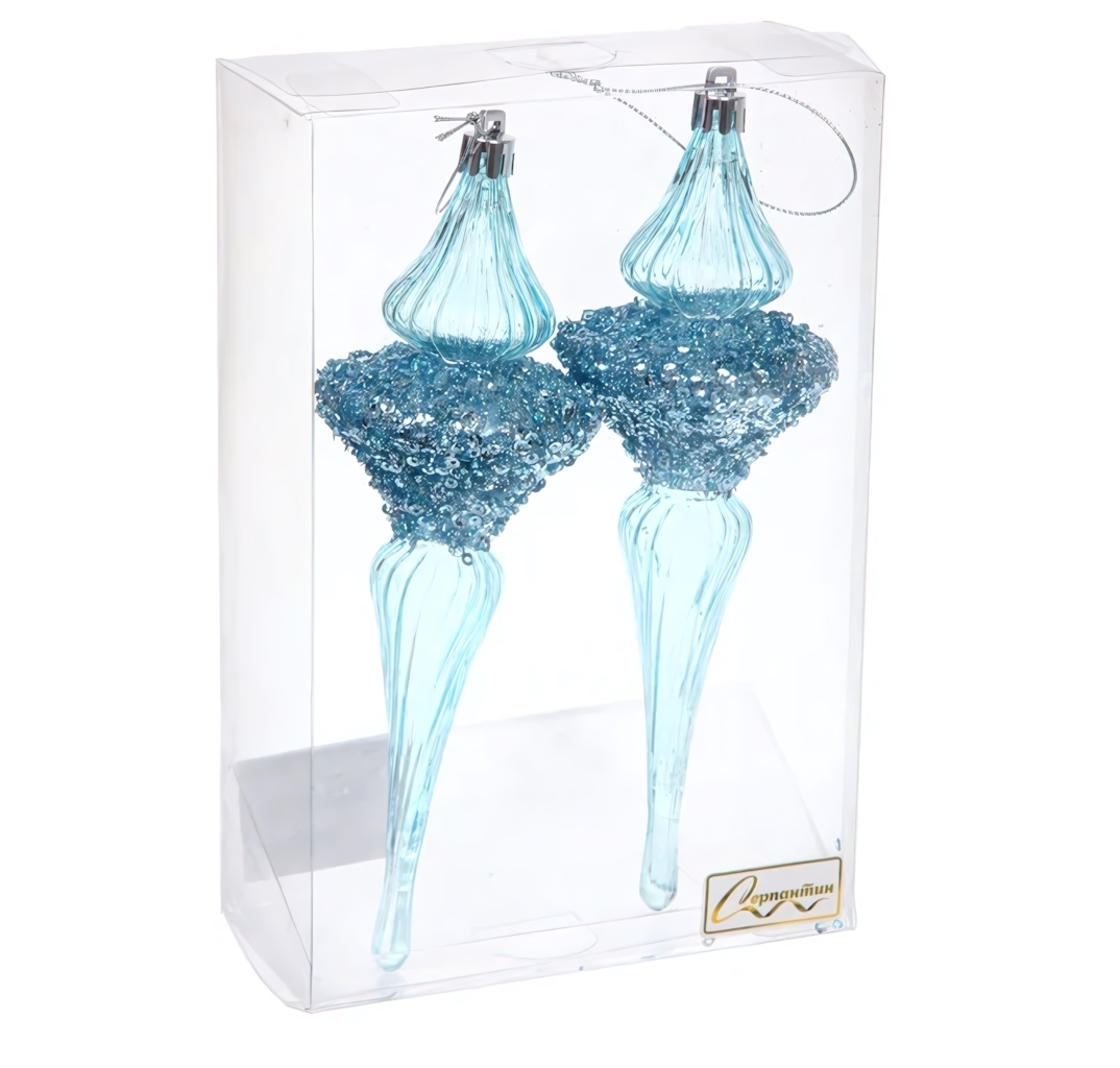 Елочные украшения "Сияние" – набор 2 шт, голубой, 6×6×19,5 см, блестящий ПВХ, создают яркий новогодний блеск
