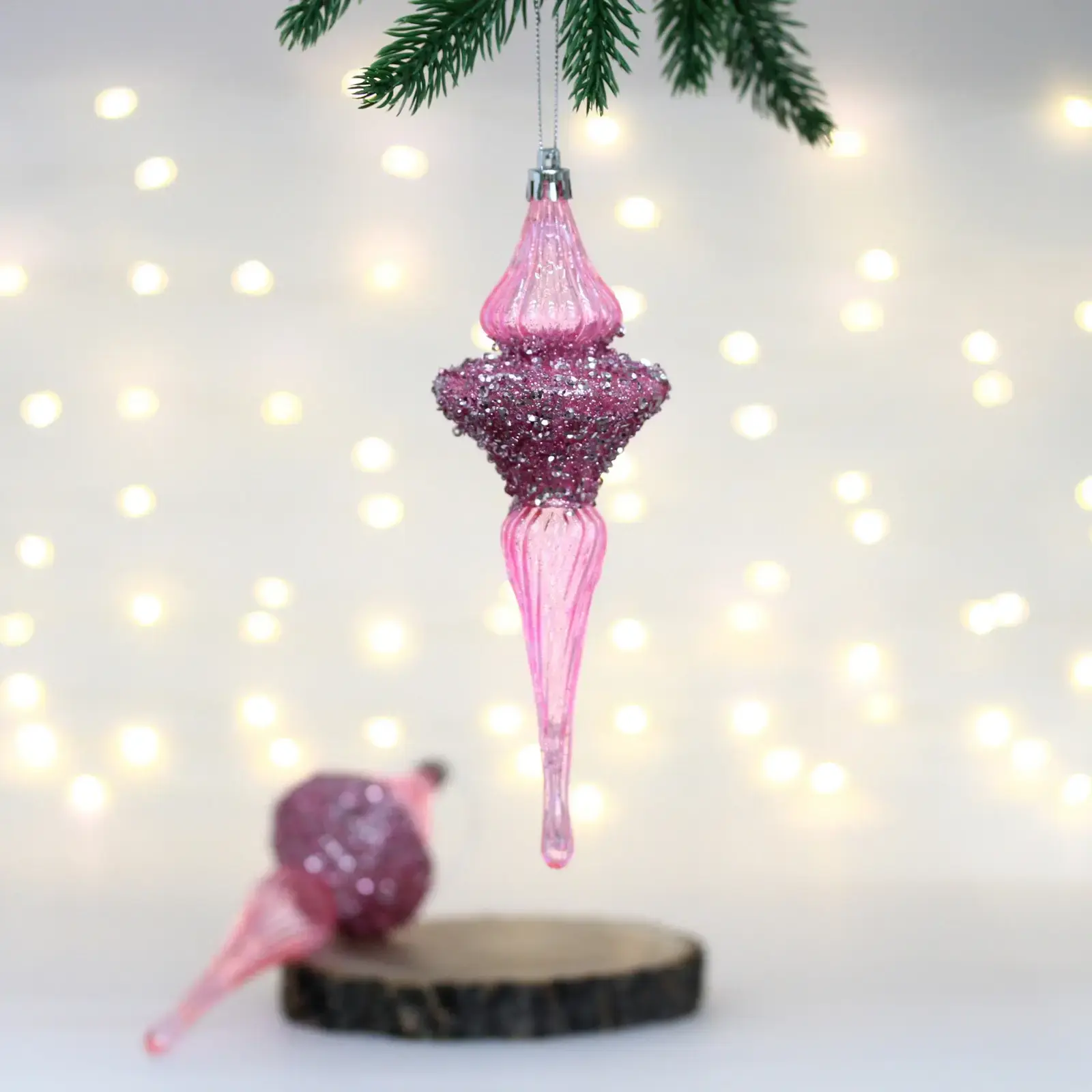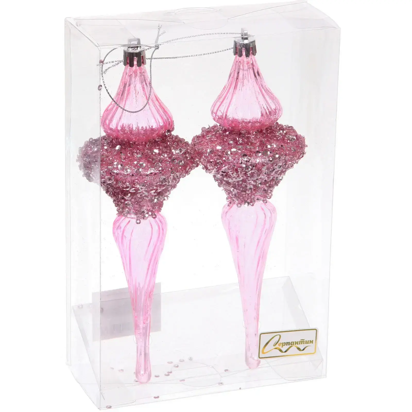 Елочные украшения «Сияние» 6*6*19.5 см (набор 2 шт), Розовый, пластик, для елки и декорирования