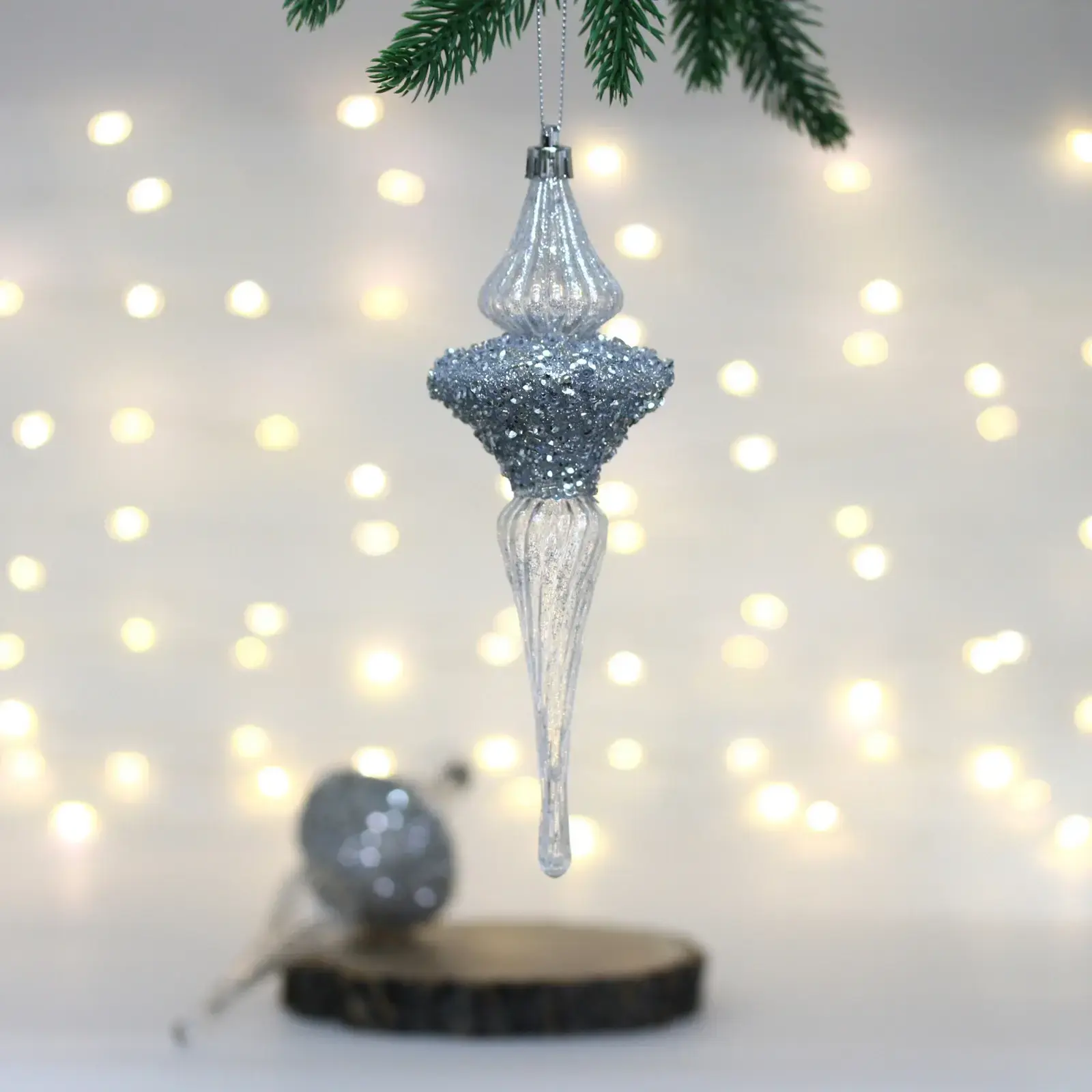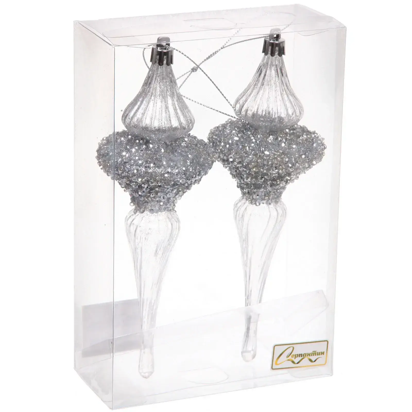 Елочные украшения «Сияние» 6*6*19.5 см (набор 2 шт), Серебро, пластик, для елки и декорирования