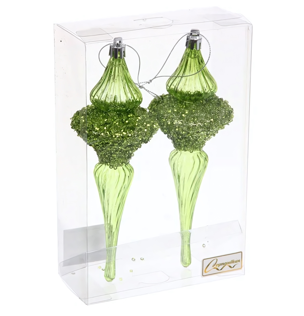 Размеры каждой игрушки составляют 6х6х19.5 см, что делает их идеальными для любой елки. В упаковке вы найдете 2 штуки, что позволяет вам сразу же украсить елку или использовать их в качестве подарка для близких. Упаковка выполнена из прозрачного материала, что позволяет видеть содержимое и делает их отличным вариантом для подарка.