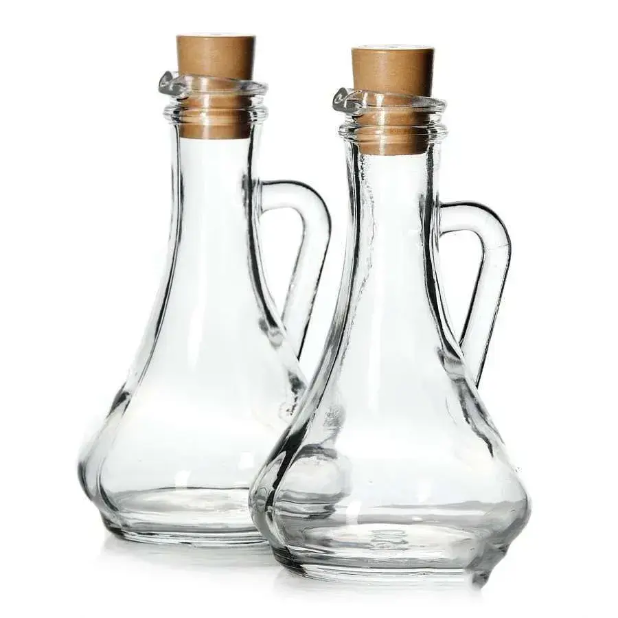 Набор стеклянных ёмкостей для масла и уксуса «ОЛИВИЯ», 2 шт. 260 мл, деревянные крышки с металлическим креплением