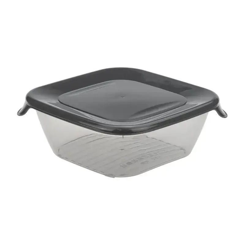 Благодаря прочному материалу из пластика, контейнер устойчив к бытовым воздействиям и обеспечивает герметичность. Его компактная квадратная форма позволяет легко размещать его в шкафах и холодильниках, а прозрачное основание дает быстрый обзор содержимого.