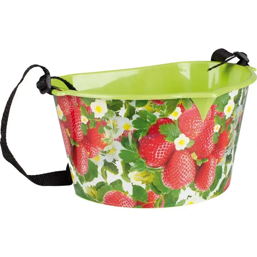 Пластиковое ведерко объемом 3 литра идеально подходит для сбора ягод, фруктов и овощей в саду или на дачном участке. Яркий дизайн с клубничным рисунком создает праздничное настроение во время работы.