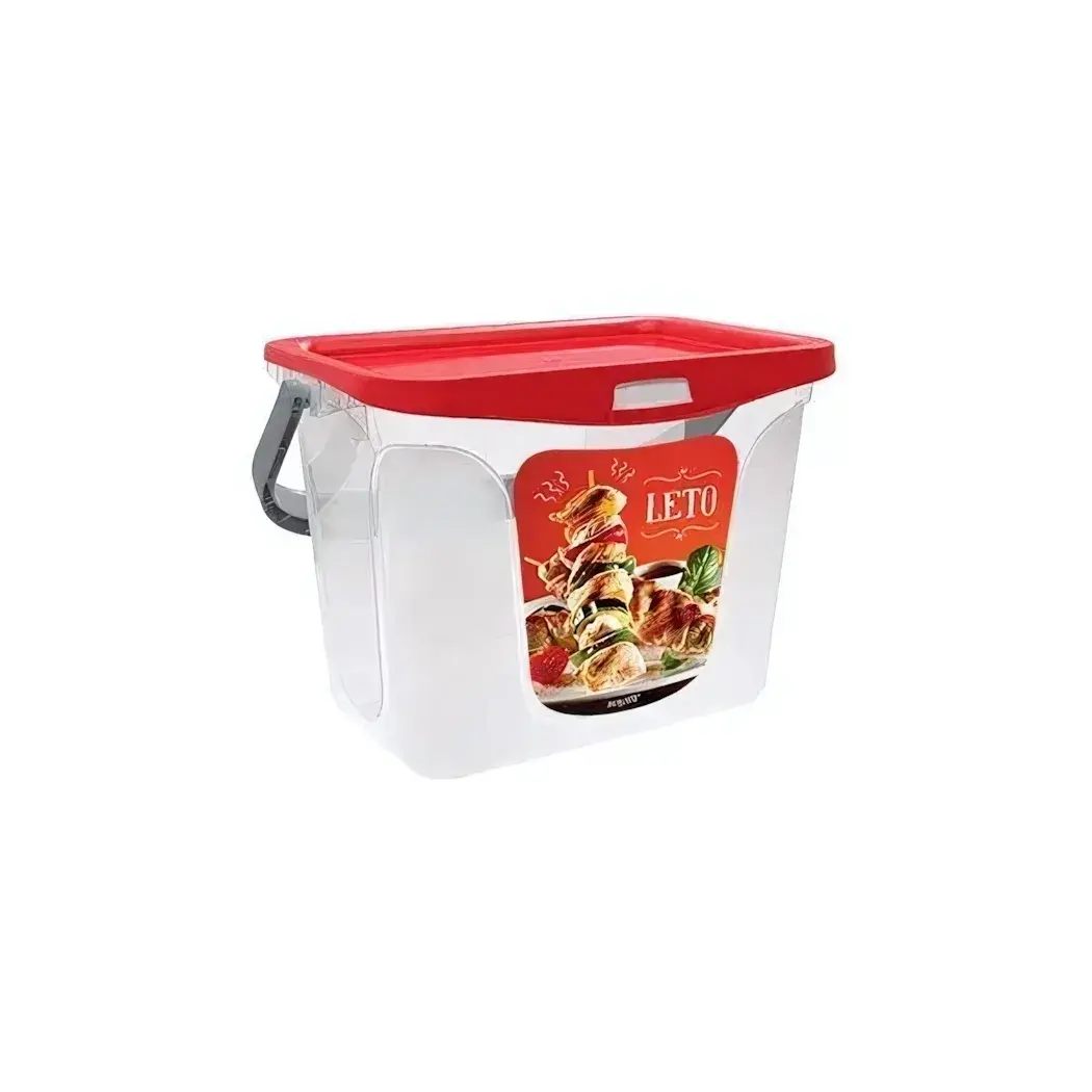 Контейнер для шашлыка Leto, пластиковый прозрачный, 6л, прямоугольный с ручкой, крышка розовая