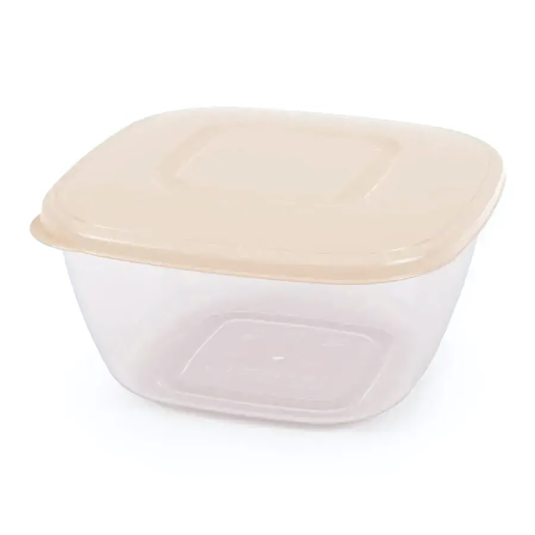 Контейнер для микроволновки герметичный 1,2л, квадратный, пластик, бежевая крышка
