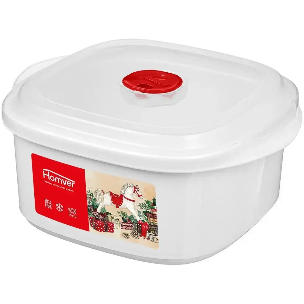 Размеры и объем — 1,6 литра, выполнен из качественного пищевого пластика. Белый цвет корпуса и крышки подчеркивает чистоту и аккуратность. Фирменная наклейка с изображением лошади-качалки и праздничным декором делает емкость особенно привлекательной — ее приятно использовать и дарить. Подходит для хранения каш, салатов, закусок, а также охлажденных и горячих блюд. Отгружается один контейнер.
