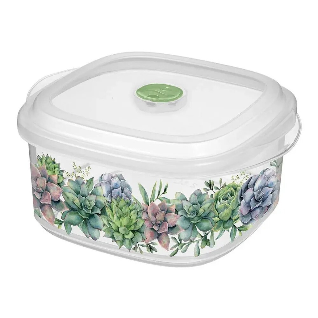 Контейнер для микроволновки 2,5л с клапаном, декор «Суккуленты», прозрачный/зеленый