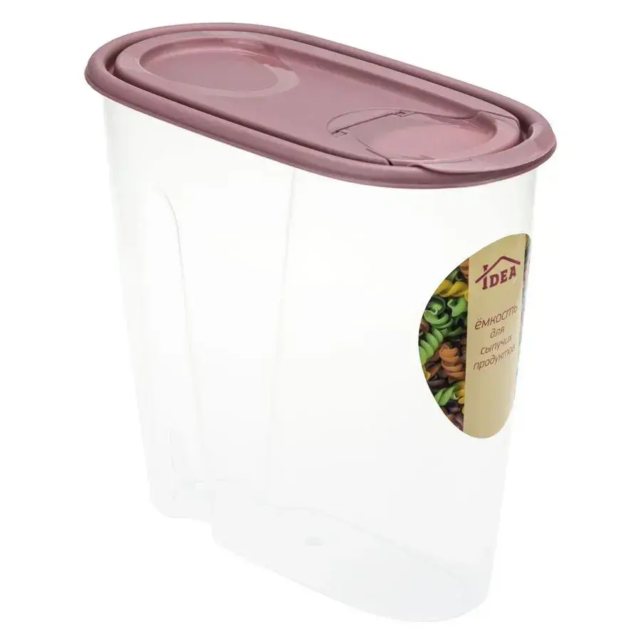 Овальная форма емкости со скошенными краями позволяет удобно брать ее с полки. Прозрачная упаковка дает возможность рассмотреть товар перед покупкой. Подходит для использования в шкафах, на открытых полках и в кладовых.