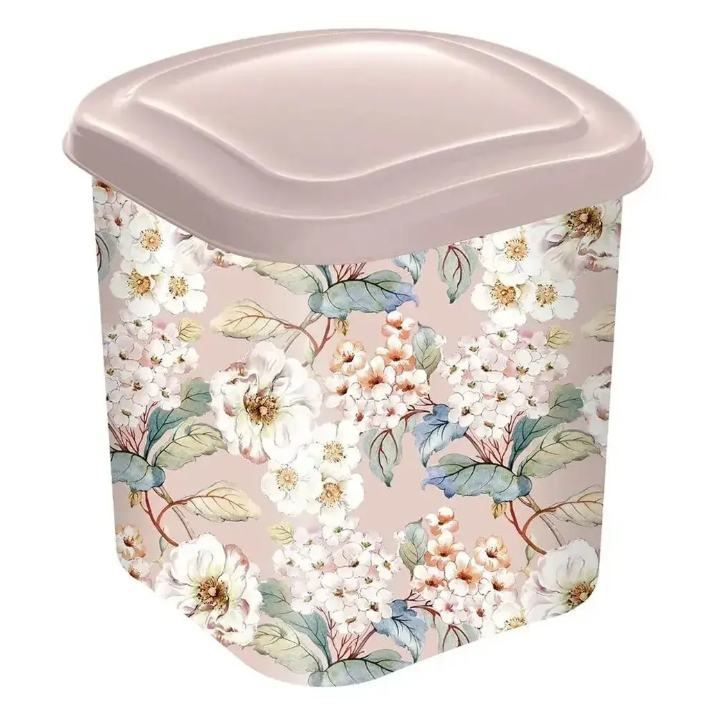 Контейнер для сыпучих продуктов 1.8л, бежевый с цветочным принтом, пластик