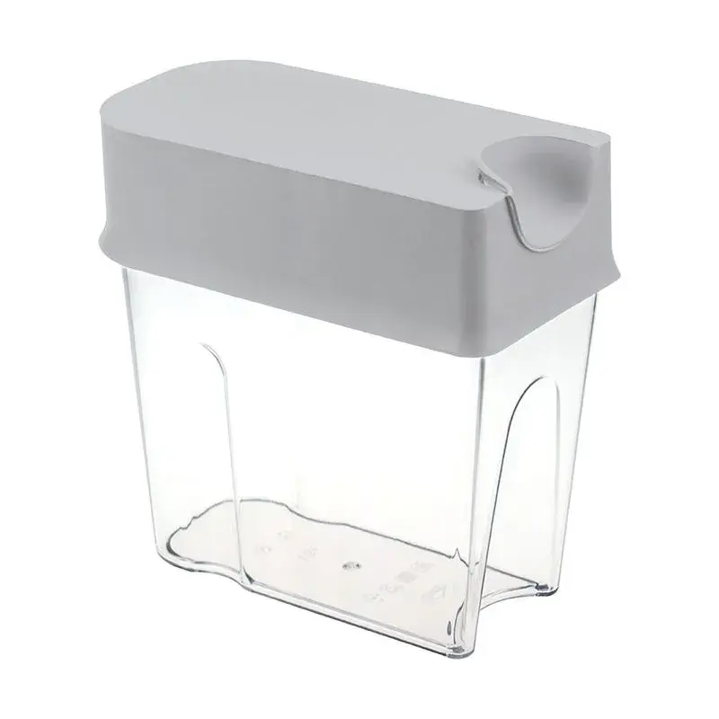 Контейнер изготовлен из высококачественного пищевого пластика, устойчивого к механическим повреждениям. Верхняя часть выполнена из светло-серого непрозрачного пластика, что придает изделию современный и элегантный вид.
