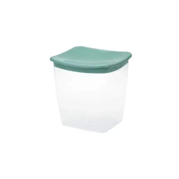 Прозрачный квадратный контейнер с герметичной крышкой фисташкового цвета — ваш надежный помощник на кухне. Сохраняет сыпучие продукты свежими и защищает от влаги благодаря плотному прилеганию крышки.