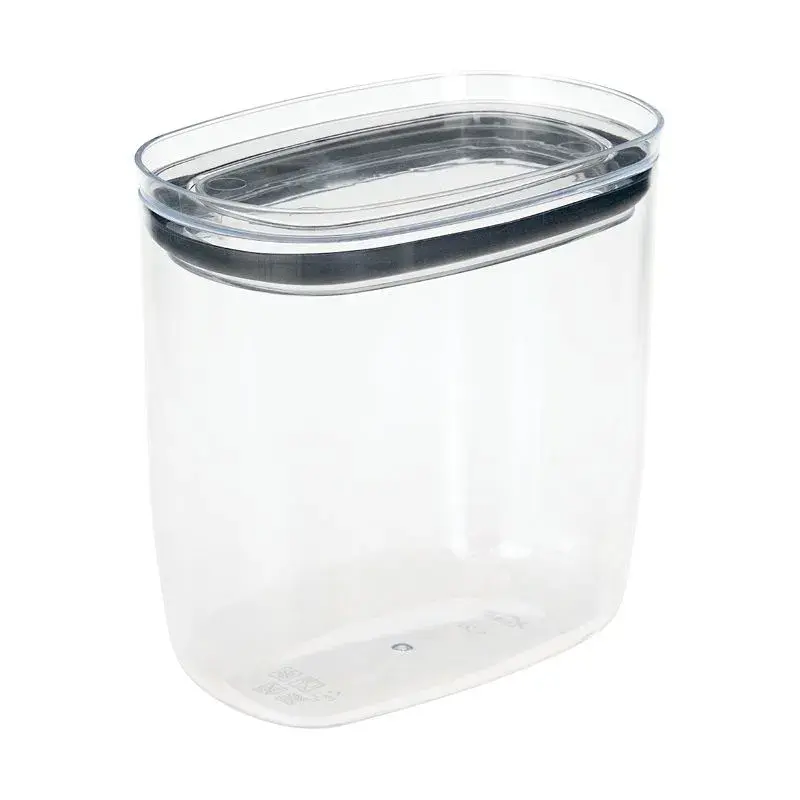 Контейнер идеально подходит для хранения круп, сахара, соли, макарон, специй и других сыпучих продуктов. Овальная форма позволяет экономить место на полке, а гладкая поверхность облегчает уход — достаточно протереть влажной салфеткой, чтобы сохранить чистоту. Контейнер удобно брать одной рукой благодаря компактной ширине.