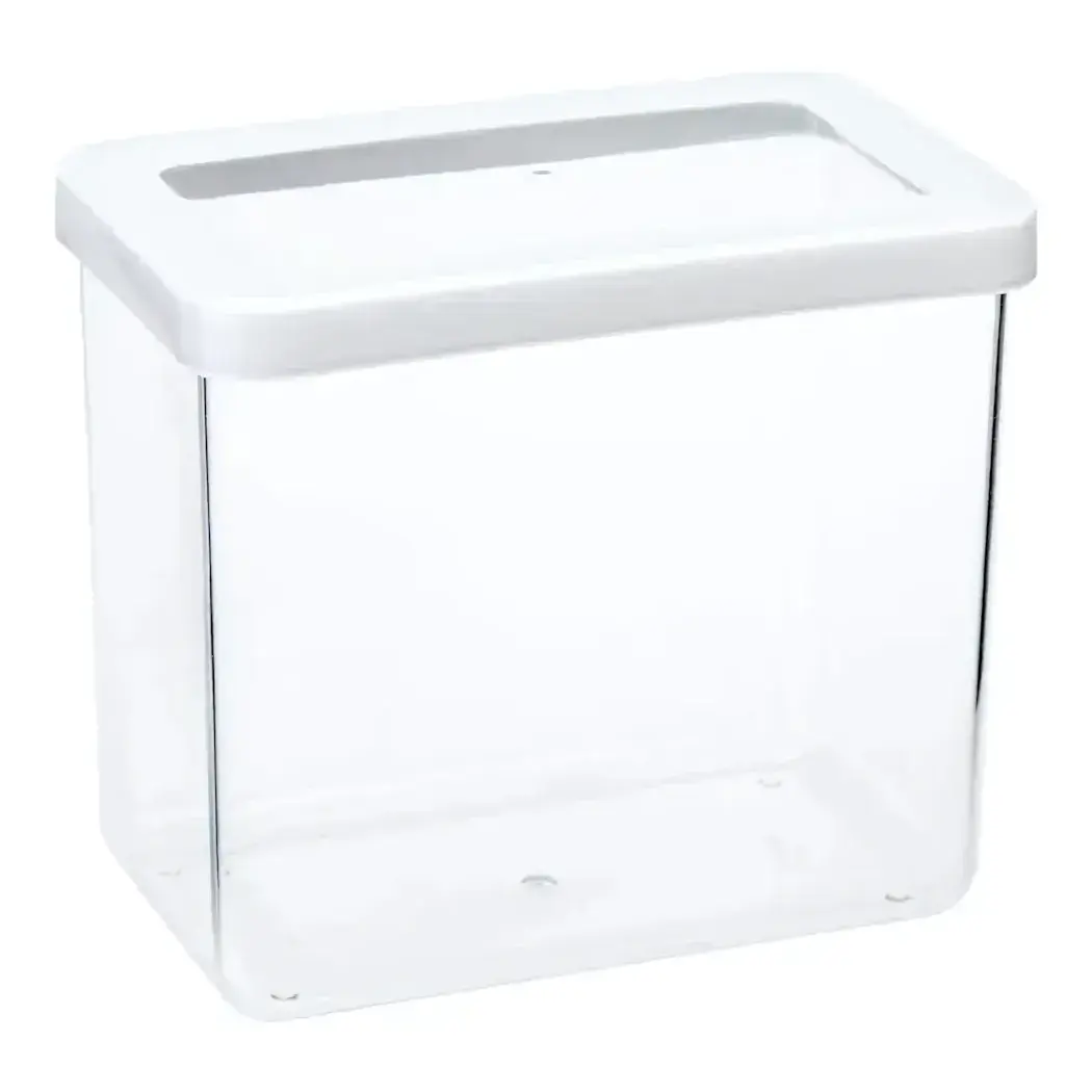 Корпус из прозрачного пластика с белой матовой крышкой гармонично впишется в любой интерьер. Закругленные углы обеспечивают безопасное использование, а усиленные стенки гарантируют устойчивость конструкции. Подходит для хранения при температуре от -20°C до +60°C.