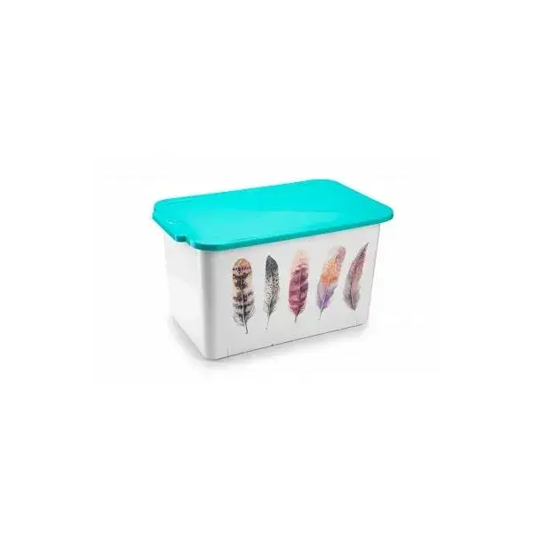 Пластиковая емкость «Serenity» сочетает функциональность и эстетику, создавая идеальное решение для систематизации пространства. Герметичная крышка бирюзового цвета и белый корпус с декоративными перьями добавят стиля любой комнате, превратив хранение в элемент декора.