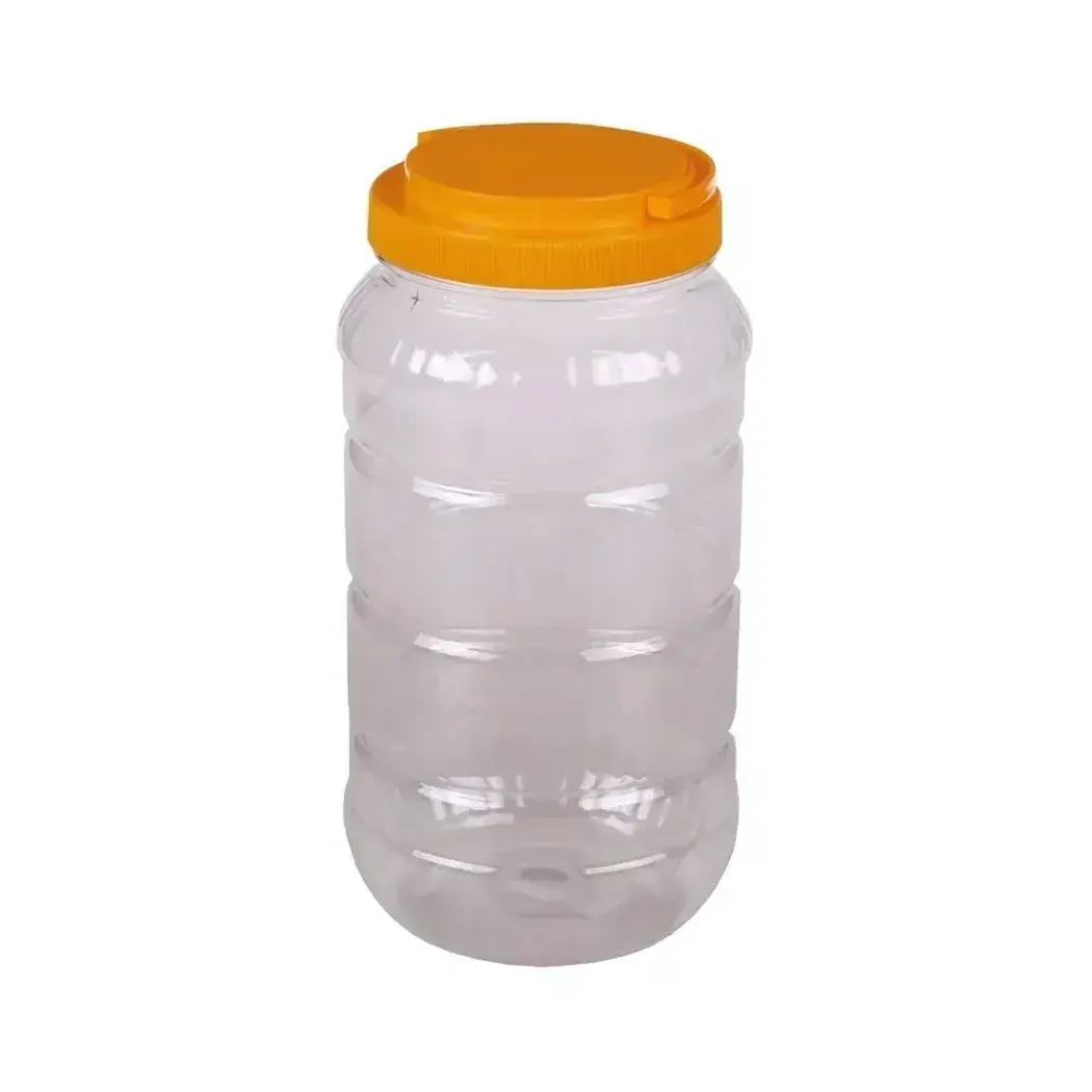 Емкость пищевая 3л с ручкой и герметичной крышкой, ПЭТ, цилиндрическая форма, оранжевая рифленая крышка