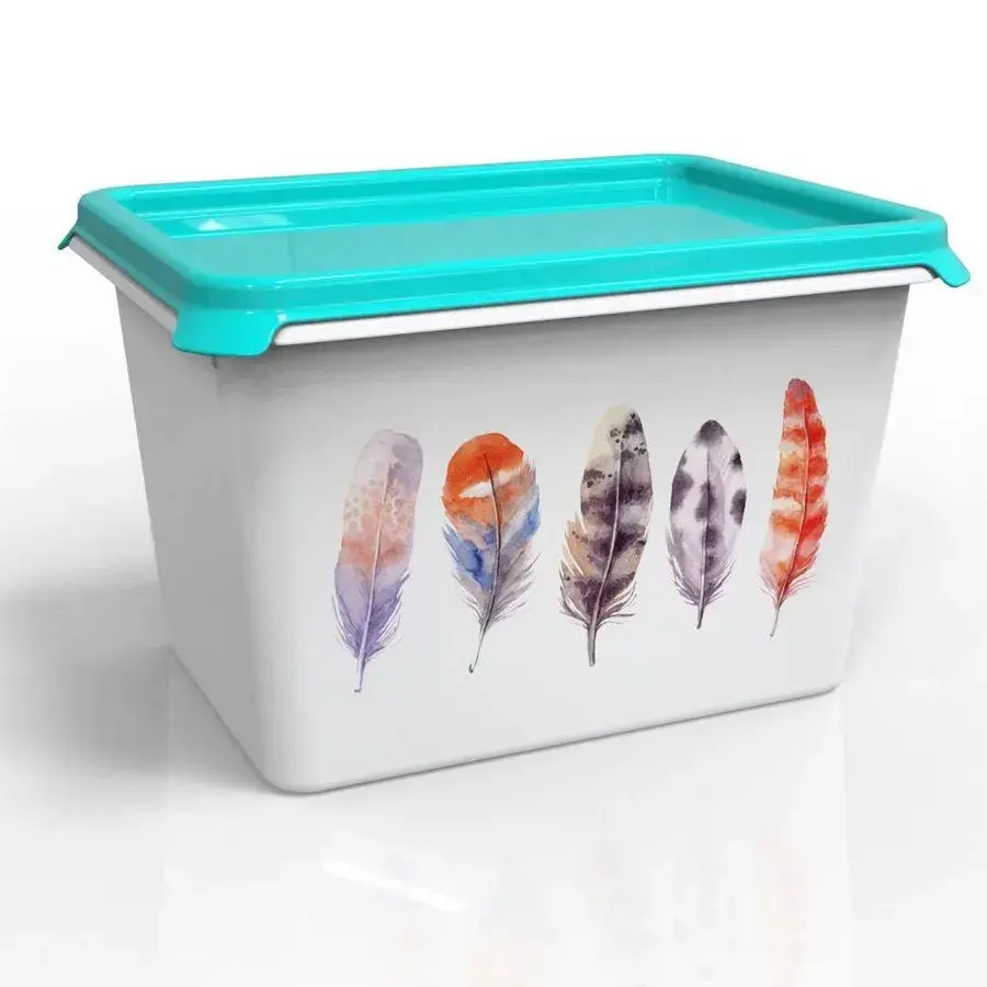Контейнер пластиковый «Serenity» герметичный с прозрачной крышкой, 2 л, белый с голубым, декор перьями