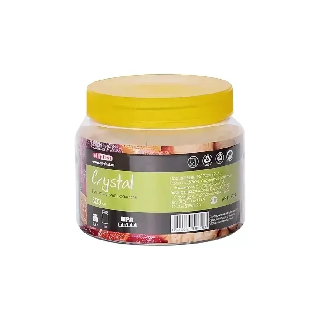 Емкость универсальная Crystal 0,5 л с герметичной крышкой, цвет в ассортименте