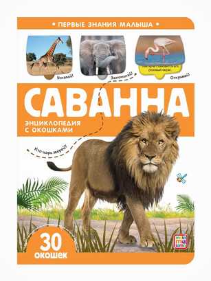Энциклопедия 'Саванна' с 30 окошками, серия 'Первые знания малыша', Malamalama