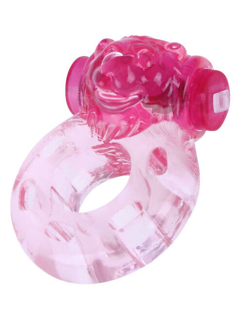 Виброкольцо эрекционное с вибратором «Маленький медвежонок», TPR, розовое, диаметр 1.8 см, высота 5 см