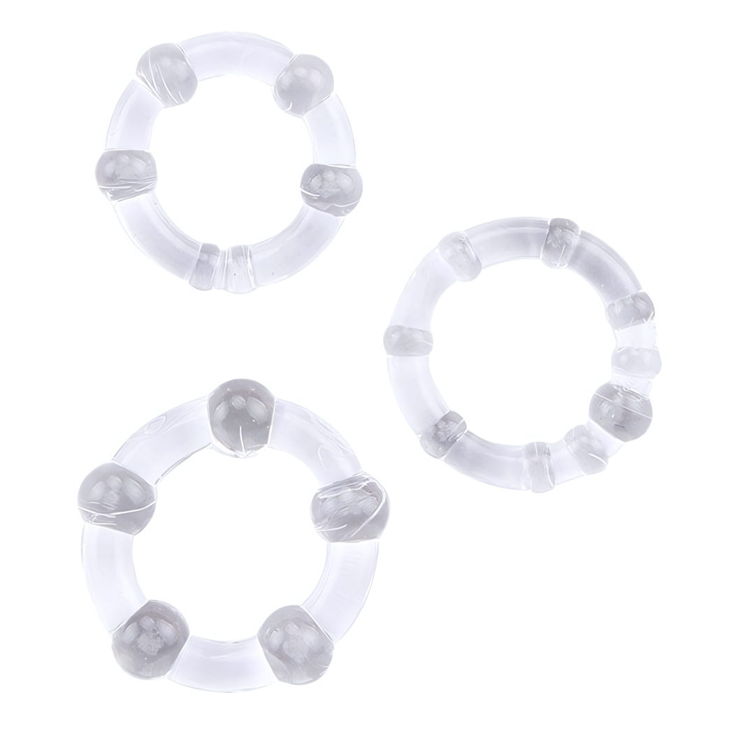 Каждое кольцо имеет диаметр 3.1 см, 3.2 см и 3.6 см, что позволяет выбрать наиболее подходящее для вас. Эти кольца легко чистятся и хранятся, что делает их практичным дополнением к вашей коллекции интимных аксессуаров.