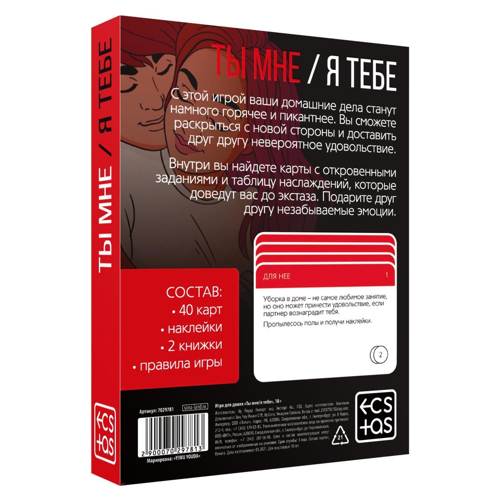 Игра полностью произведена в России, соответствует требованиям к продукции для взрослых. Черно-красная упаковка размером 18x12x3 см легко помещается в шкафу или под кроватью. Рекомендуется хранить в сухом месте при комнатной температуре.