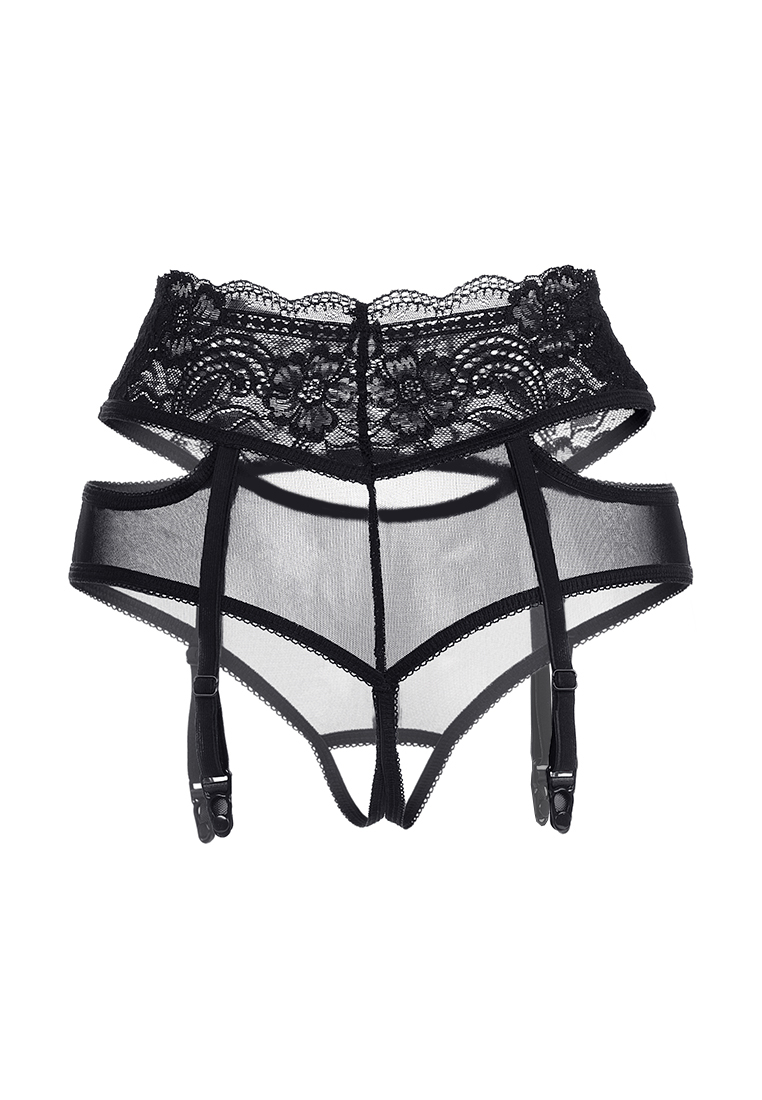 Этот изысканный комплект женского белья создан для особых моментов. Сочетание нежного кружева и полупрозрачной сетки подчеркивает женственность и создает неповторимый эротический образ. Высокая посадка и регулируемые подвязки обеспечивают идеальную посадку и комфорт, а фигурные вырезы добавляют дерзкую нотку.