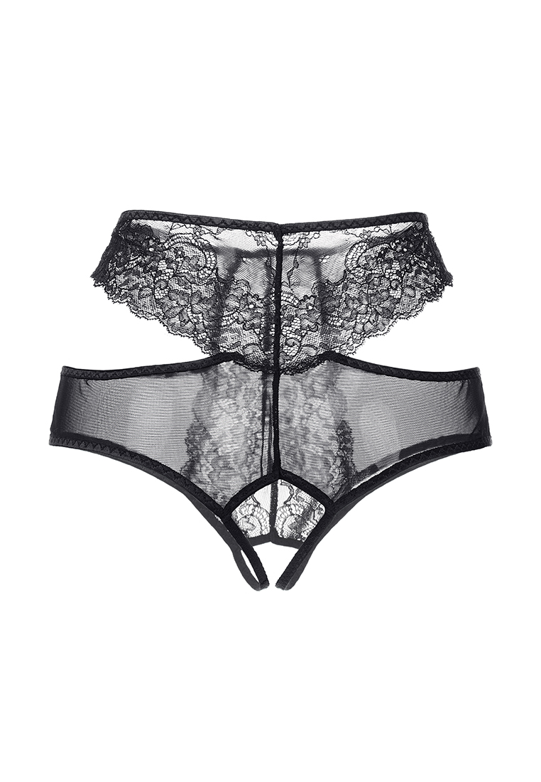 Эротические трусики с высокой посадкой и ажурными вырезами черные 50-52