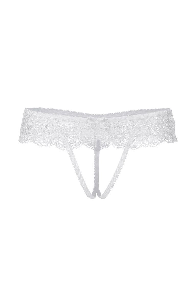 Трусики-стринги Eve, размер 46-48, белые, кружевные, с открытой зоной бикини