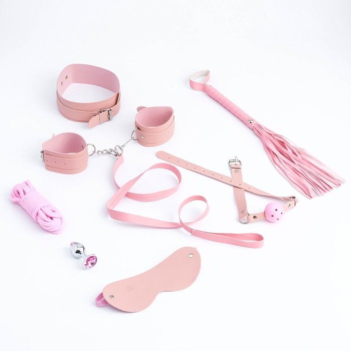 Размеры и материалы каждого элемента тщательно подобраны для максимального комфорта. Нежно-розовый цвет добавляет игривости, а искусственная кожа легко очищается и сохраняет свой первоначальный вид. Этот набор станет отличным подарком для тех, кто хочет добавить в свою жизнь немного остроты и новизны.