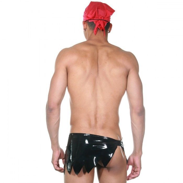 Контрастное сочетание черного и красного создает визуальный акцент, а блестящая текстура материала добавляет образу таинственности. Эластичная ткань сохраняет форму даже при активном использовании, а продуманная конструкция элементов обеспечивает комфортную посадку.