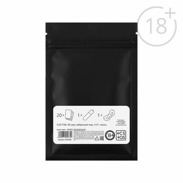 Набор включает в себя 20 карт, вибропулю и маску. Цвет: разноцветный. Материалы: пластик и нейлон. Вибрация: есть. Тип и количество батареек: есть в комплекте. Этот набор станет отличным подарком для тех, кто хочет добавить немного остроты в свою жизнь.