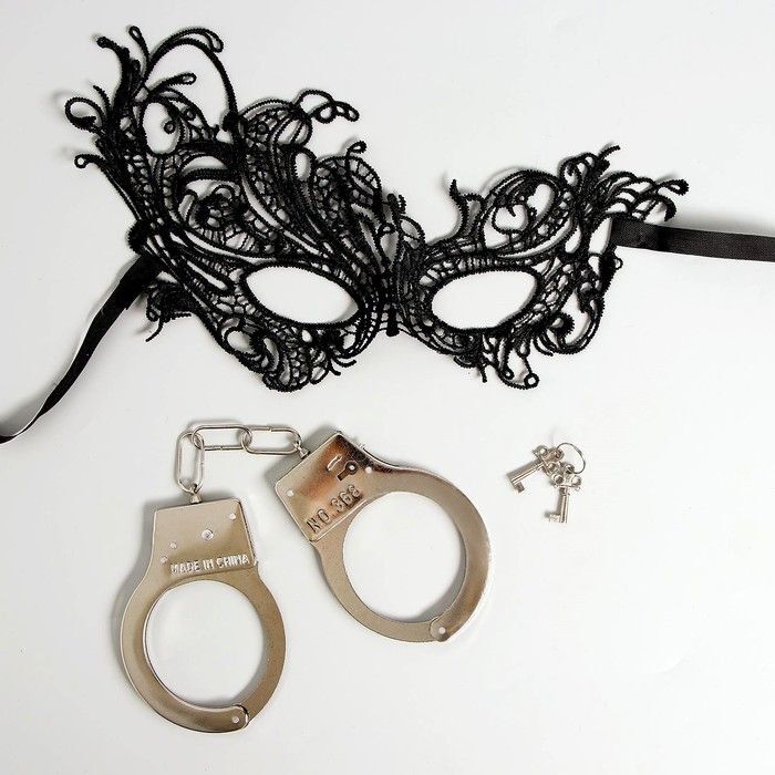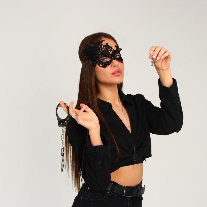 Надежные наручники выполнены из качественного металла с гладкой поверхностью, что обеспечивает комфортное использование. Ажурная маска из полиэстера создает загадочный образ и легко регулируется благодаря мягкой завязке.
