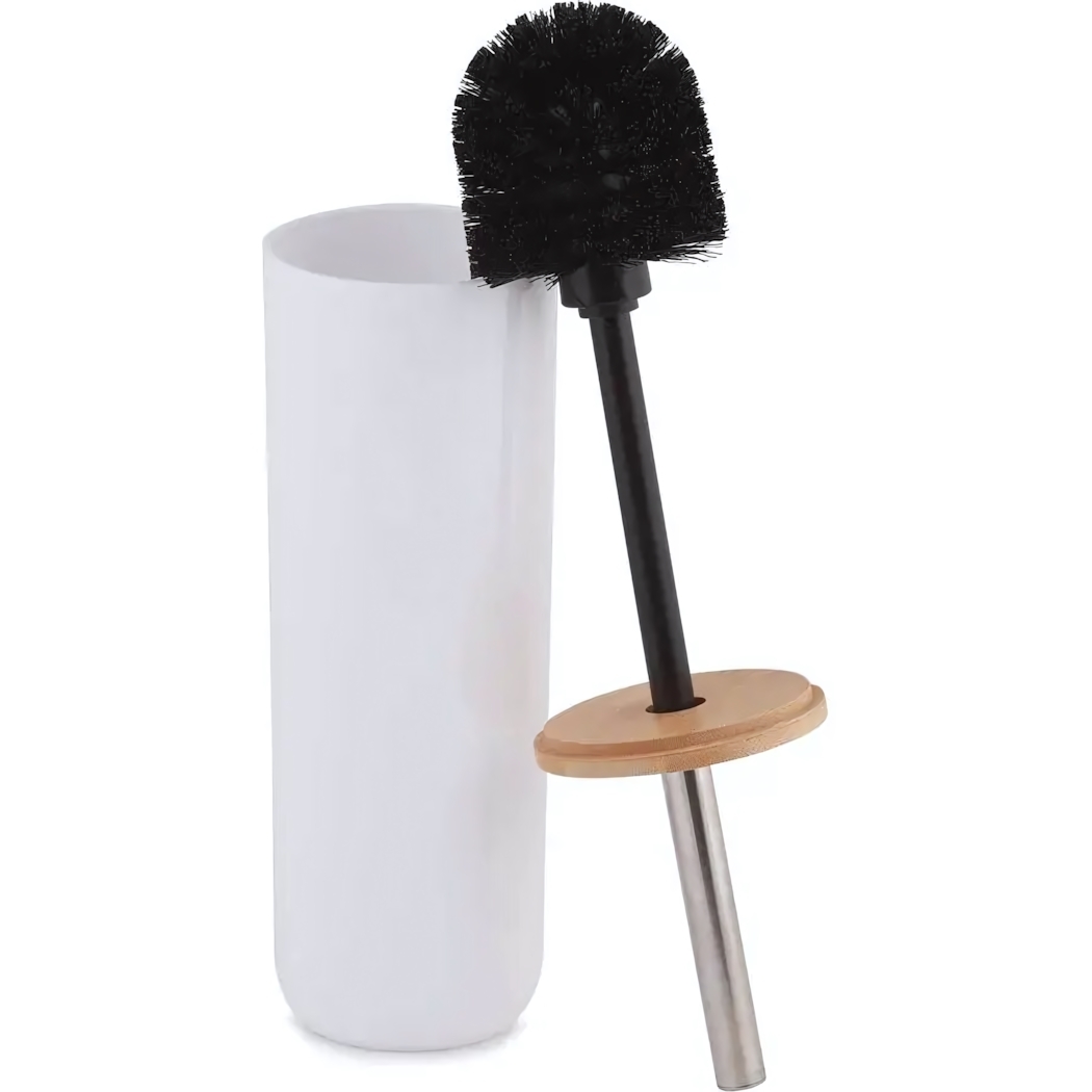 Ёршик для унитаза с подставкой, бамбуковая ручка, металлическая щетина, белый цвет