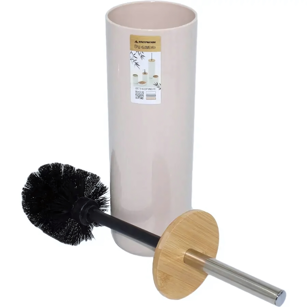 Ерш туалетный с подставкой, пластик и бамбук, устойчивое основание, бежевый/черный/розовый