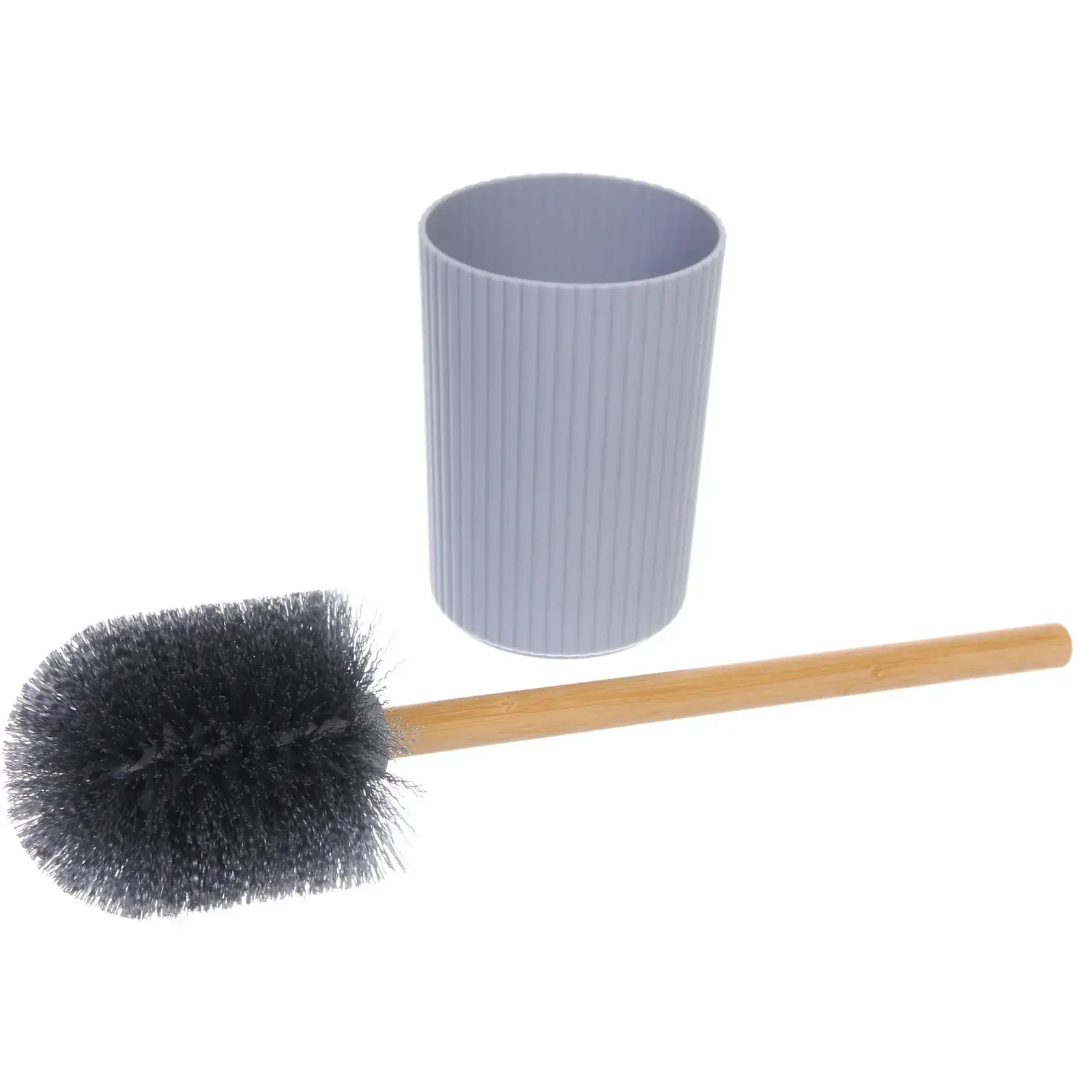 Ершик выполнен из качественных синтетических волокон, а ручка изготовлена из натурального дерева, что обеспечивает надежность и долговечность. Высота ерша составляет 36 см, что делает его удобным для использования. Серый цвет и рифленая поверхность подставки добавляют стильный акцент в интерьер вашей ванной комнаты.