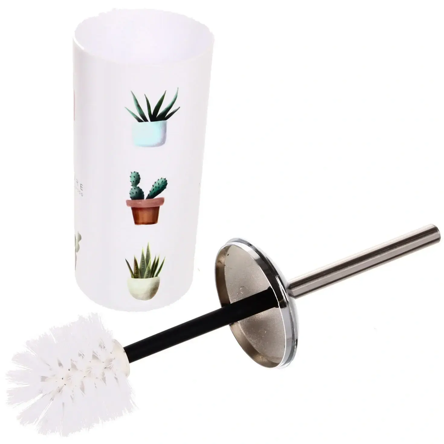 Ершик с закрытой подставкой сочетает практичность и эстетику, превращая обычный предмет гигиены в элемент декора. Удобная конструкция с металлической ручкой и герметичным корпусом обеспечивает гигиеничное хранение, а оригинальный дизайн с кактусами добавит нотку свежести в интерьер ванной.