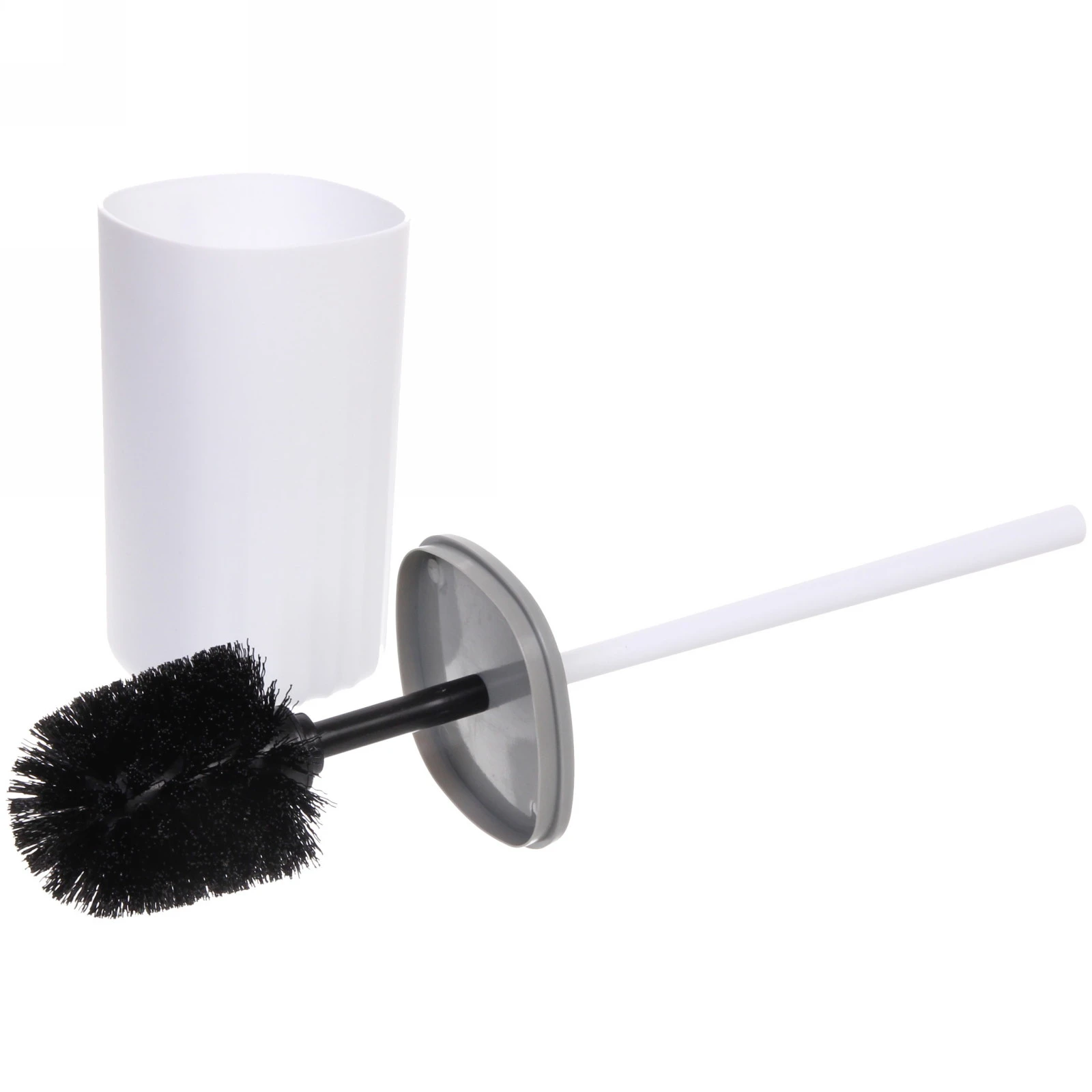 Размер ершика составляет 37 см, что делает его удобным в использовании. Подставка имеет круглую форму и выполнена в белом цвете, что придает изделию современный вид. Ершик с черными щетинами обеспечивает качественную очистку, а его гладкая ручка удобна для захвата.