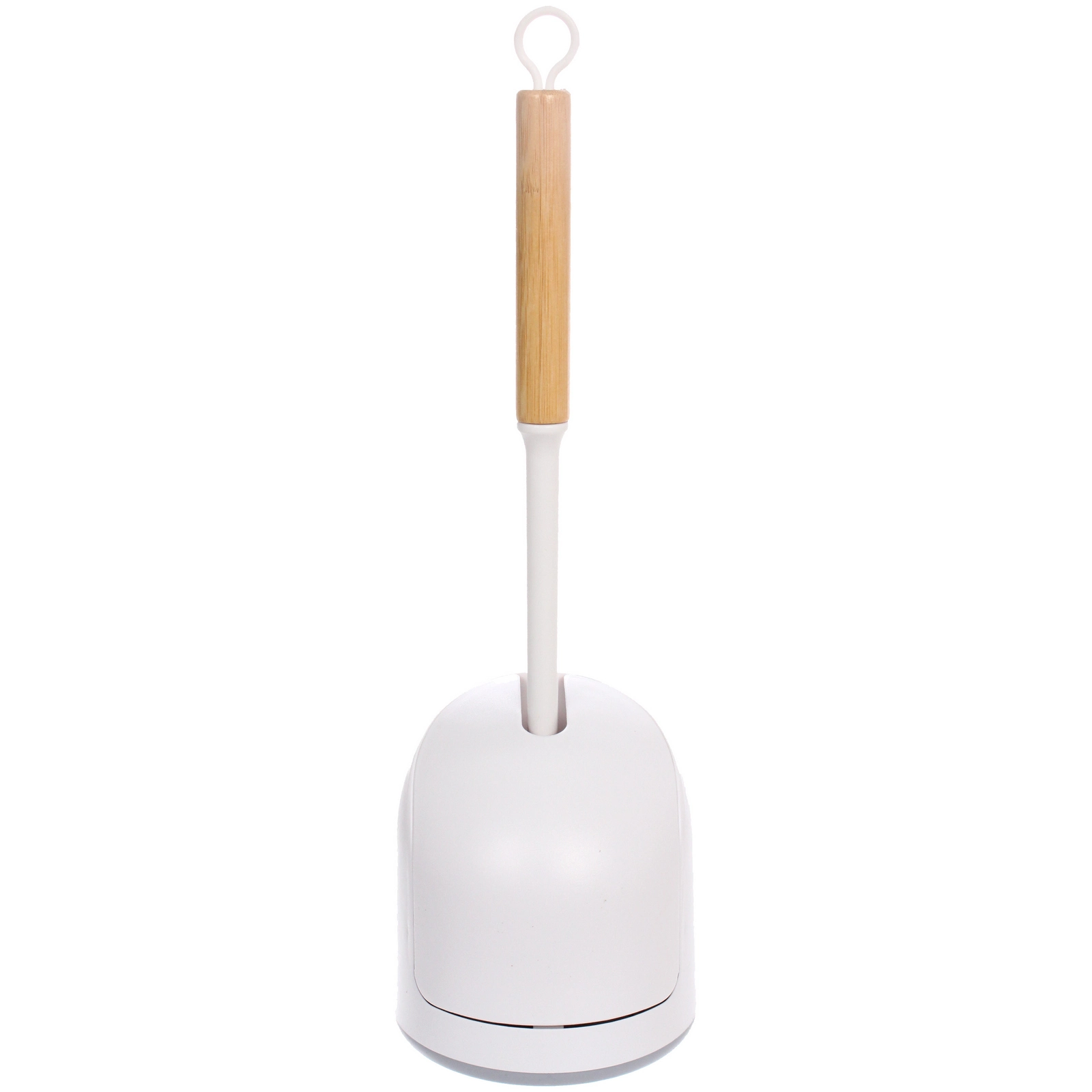 Подставка выполнена из прочного белого пластика с матовой поверхностью, устойчивой к влаге. Ручка сочетает пластик и декоративный элемент под бамбук, что придает изделию аккуратный и универсальный вид. Нейтральный цвет легко впишется в интерьер ванной комнаты в современном или минималистичном стиле.